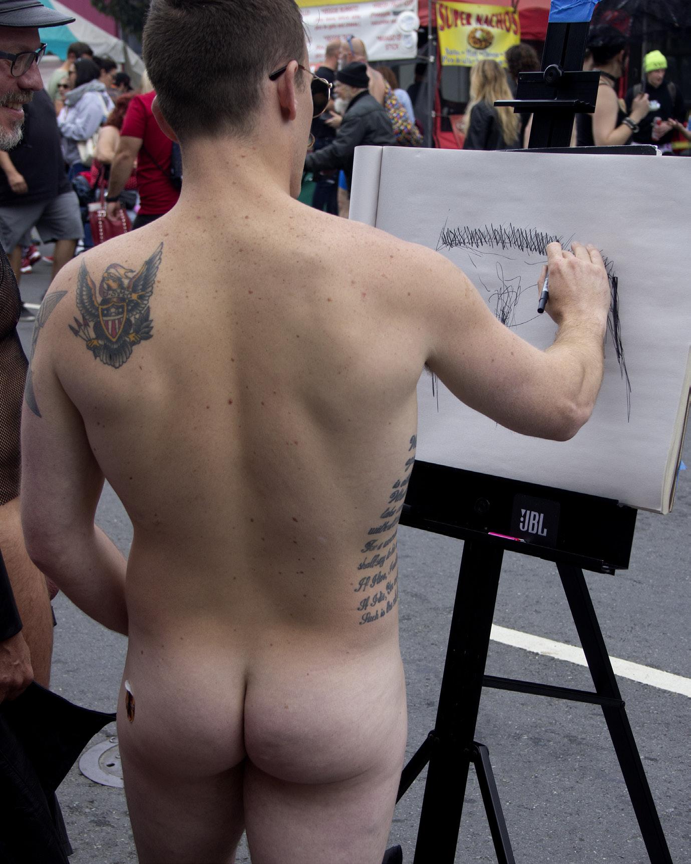 ‘Nude Figure Drawing Redefined’. Captured at a street fair in San Francisco.”