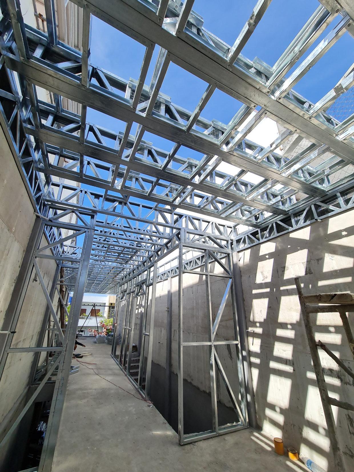 Lightgaugesteeltechnology hasrevolutionizedtheconstructionindustryby providingaversatile,efficient,andenvironmentallyfriendlyalternativetotraditionalbuilding materials.Lightgaugesteel(LGS)isacold-formedsteelproduct,manufacturedfromhighstrengthGalvalumesteelcoils,whicharerolledintovariousshapesandsizes,mostcommonly usedforframingapplications.Withtheever-growingdemandforsustainableandcost-effective construction solutions, light gauge steel house frames have emerged as an innovative and viable optionforresidentialandcommercialstructures.