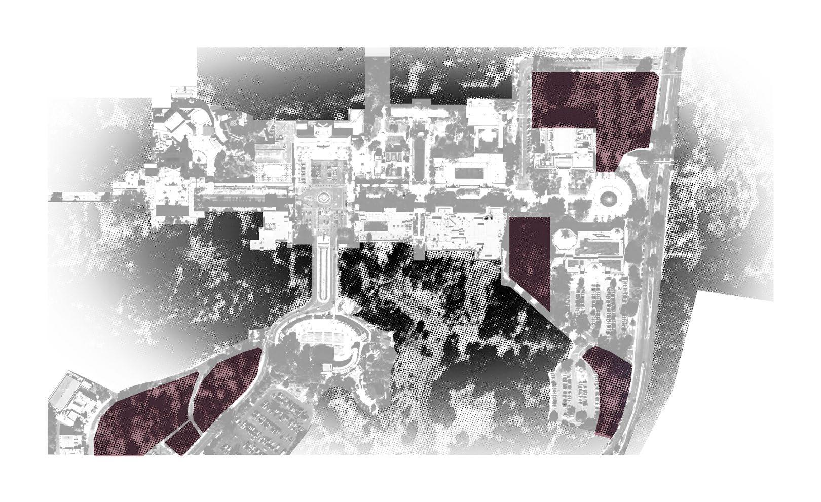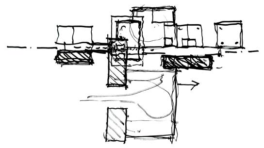 The resulting diagram was also used to develop a concept of two grids merging and utilizing the resultant forms.