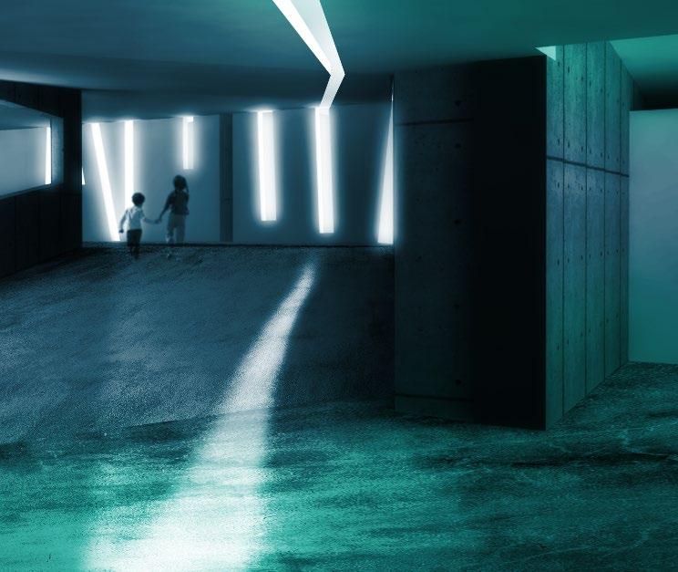 The entry space provides brief glimpses of activity before directing movement. Heightening anticipation.