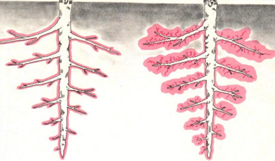 Ennek hatására a létszükségletet jelentő, foszfort feltáró talajréteg és a felvehető gyökérzóna nagysága is megnő, amire a 2. fotó mutat példát.