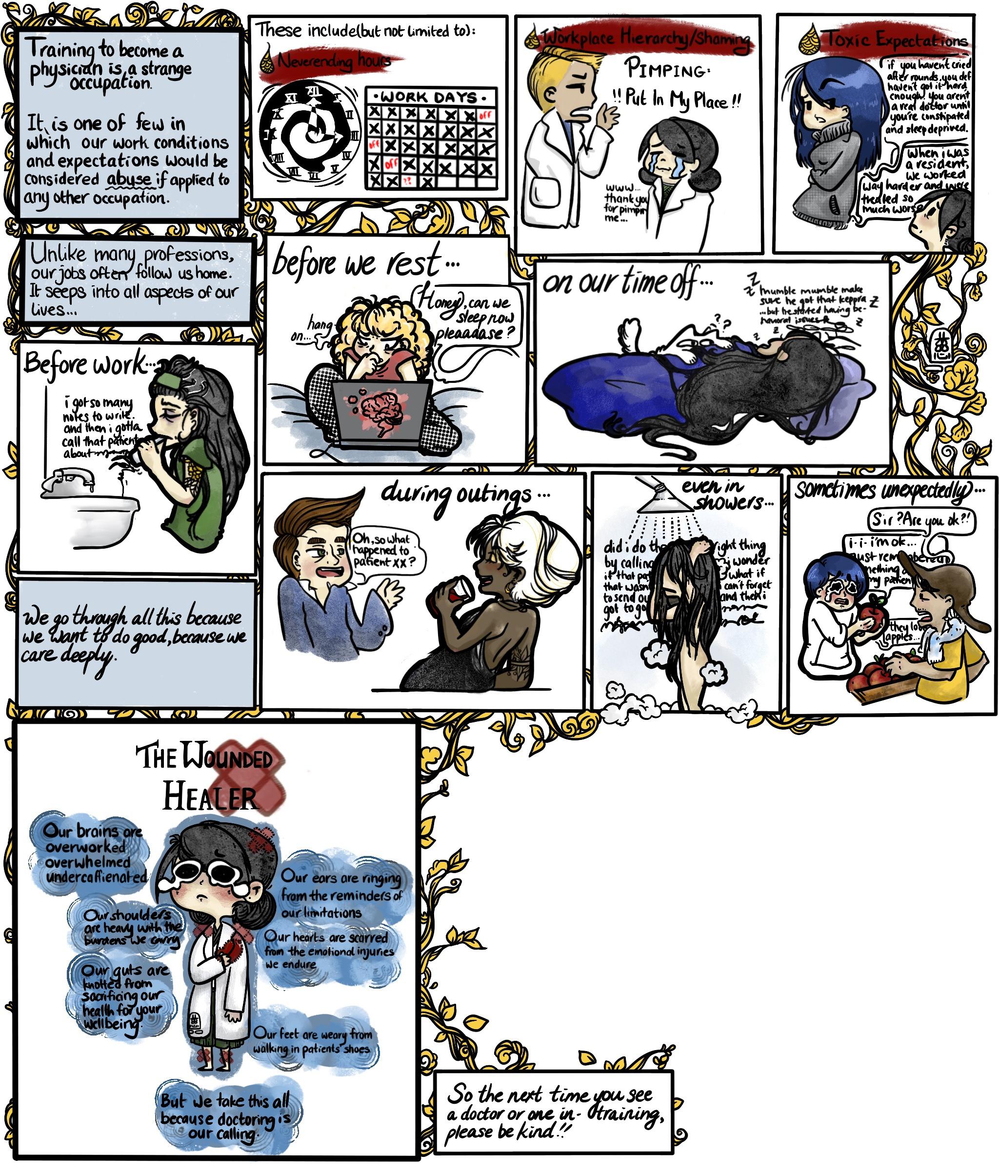 Dr. Nita Chen brings the world of art to medicine with her full page comic. It is no easy task becoming a doctor and this cartoon demonstrates that in a relatable way.