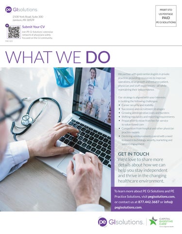 PE GI Journal , a free publication, is published by PE GI Solutions, 2500 York Road, Suite 300, Jamison, PA 18929.