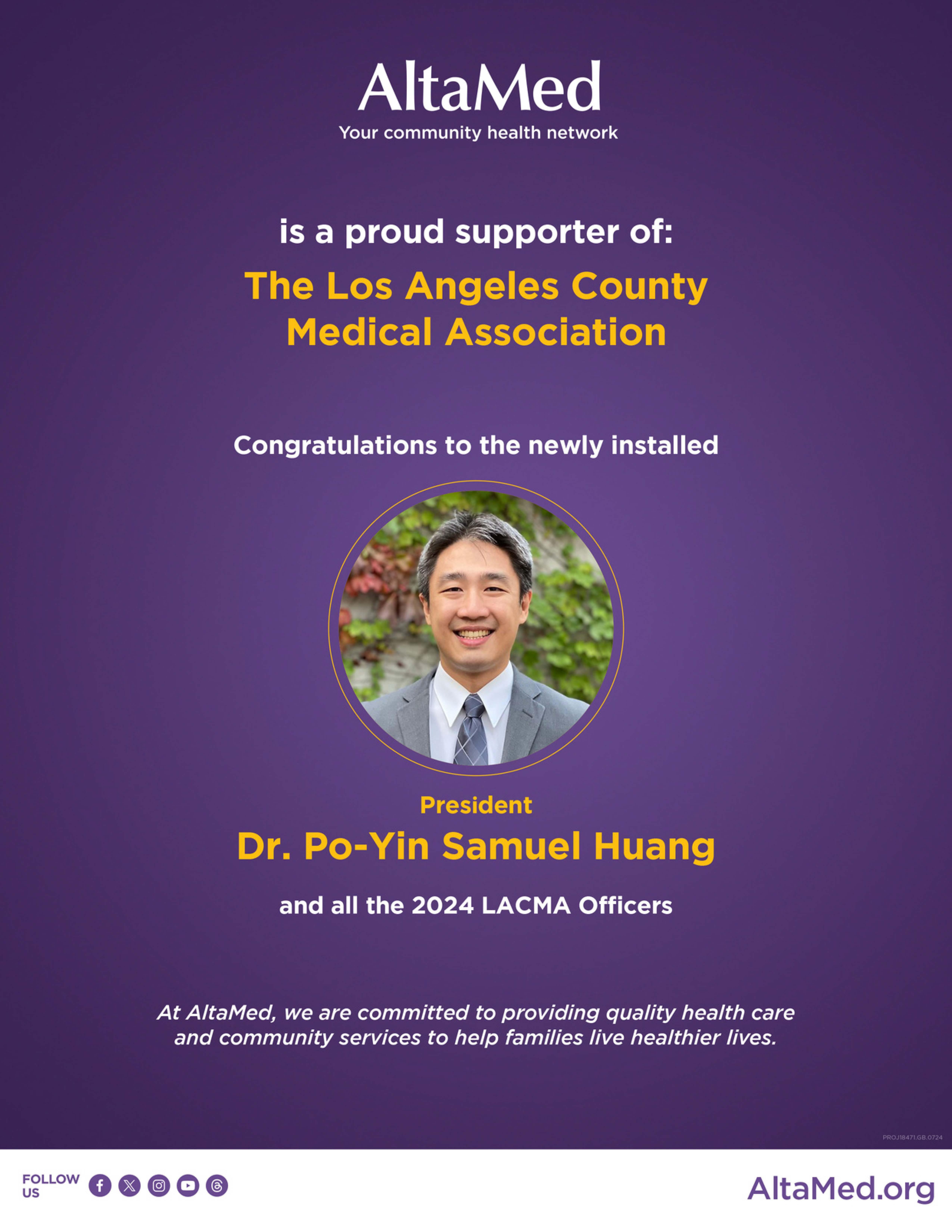 As we embark on this journey, I encourage each of you to actively engage with LACMA’s initiatives and share your insights. Together, we can continue to build a strong, resilient medical community that leads with excellence, compassion, and innovation.