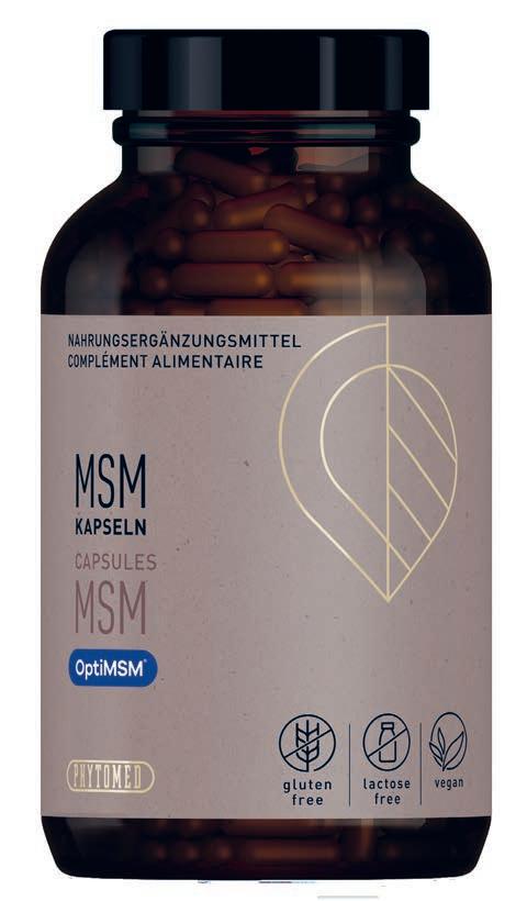 Die PHYTOMED MSM Kapseln enthalten 500 mg reines, durch mehrstufigen Destillationsprozess gewonnenes Methylsulfonylmethan – OptiMSM® in einer vegetabilen Kapselhülle.