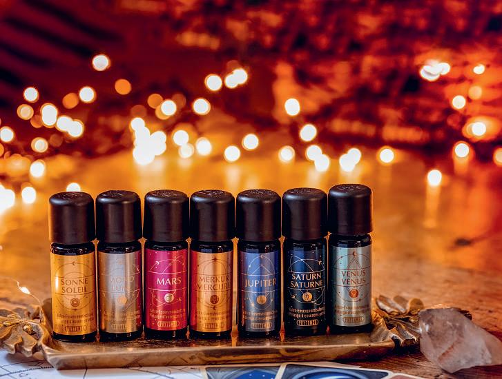 Les principes fondamentaux de l’astrologie portent les noms des sept planètes anciennes Elles imprègnent tout et relient le monde d’une manièreparticulière. Le soleil et la lune jouent ici un rôle important: le soleil représentelemasculin, la lune le féminin. Lessignes du zodiaque indiquent quand un principe fondamental donné est particulièrement fort. Les mélanges d’essences &sprays astrologiques PHYTOMED aident àéquilibrer ces énergies originelles en les harmonisant avec des huiles essentielles pures. Les huilesessentielles utilisées correspondent aux différentes planètes.