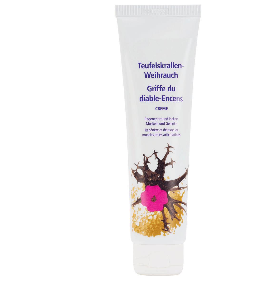 Crème griffedudiable-encens, àlavitamine Eetà les huiles essentielles bois de cèdre, ravintsara, marjolaine, sauge sclarée et gingembre. Un massage doux régénèreetdélasse les muscles et les articulations, et stimule la circulation sanguine.