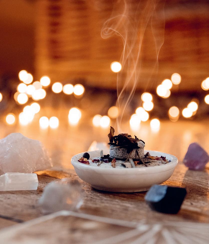 Räuchern ist eine alte Tradition, bei der Kräuter,Harze oder Hölzer verbrannt werden, um Räume von negativen Energien zu reinigen undeine besondereAtmosphärezuschaffen. Besondersinden Raunächten, den mystischen Nächten zwischen Weihnachten und Neujahr,entfaltet das Räuchern seine besondereMagie. Das sanfteAufsteigen des Räucherwerkserfüllt den Raum mit wohltuenden Düften undschafft eine Atmosphäreder Geborgenheit und desNeuanfangs. In dieser Zeit lassenwir Altes hinter uns, schliessenFrieden mit Vergangenem und öffnen unser Herz fürdie Hoffnung und die Möglichkeiten des neuen Jahres.