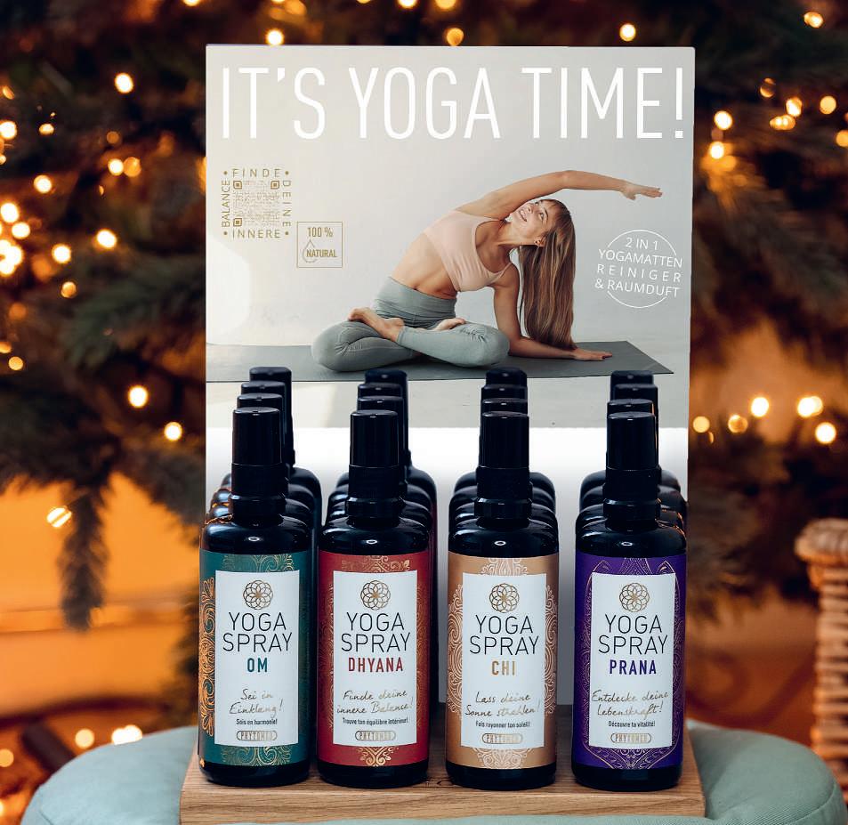 4×6 Yoga Sprays à100 ml +je1Tester +1Holzdisplay mit A4 Plakat