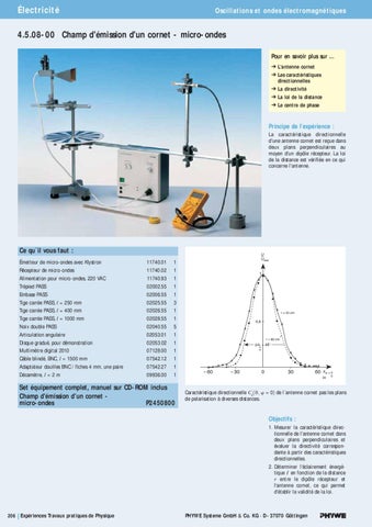 Set équipement complet, manuel sur CD-ROM inclus Champ d'émission d'un cornet micro-ondes P2450800