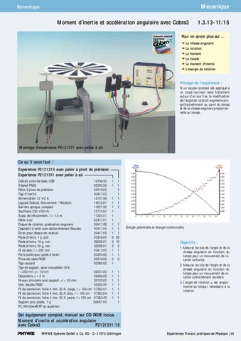 Set équipement complet, manuel sur CD-ROM inclus Moment d'inertie et accélération angulaire avec Cobra3 P2131311/15 PHYWE Systeme GmbH & Co. KG · D - 37070 Göttingen