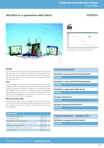 P2530201 Hall effect in n-germanium (with Cobra3) P2530211 Band gap of germanium P2530401 Band gap of germanium (with Cobra3) P2530411