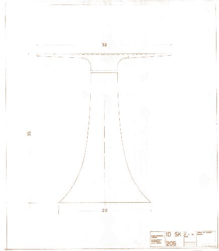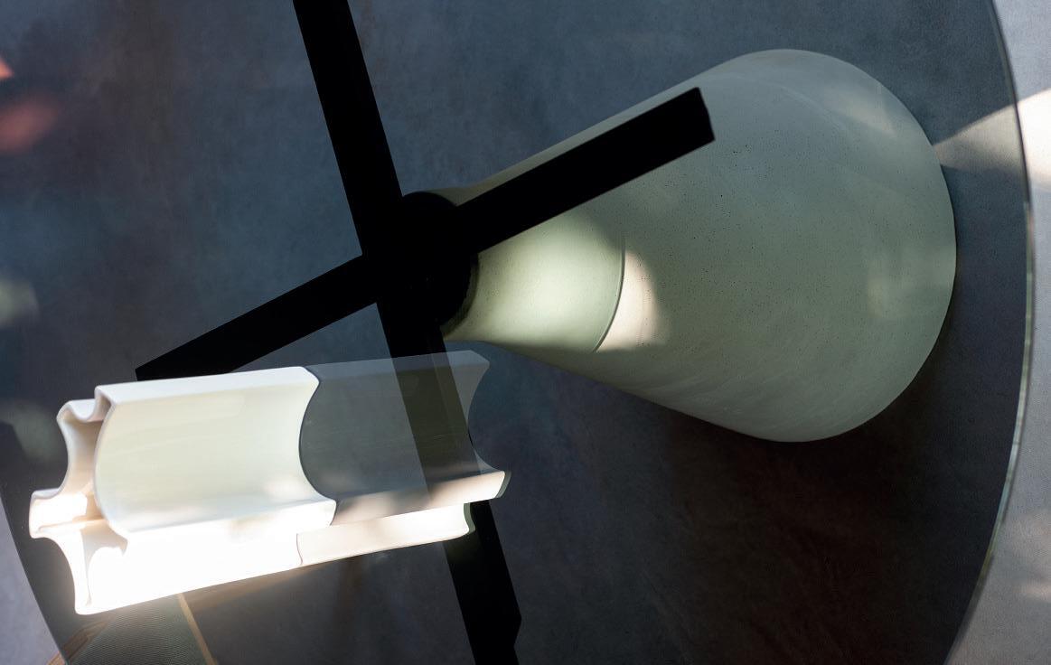A table entirely in marble that continues the research connected to gravity: in this case, the particular solution of an elliptical plane, inserted asymmetrically in an inclined cylindrical leg, blocks by “eccentricity” (and no longer by “conicity” as in the other models) its vertical movement, crushing with its own “cantilevered” weight the otherwise sliding joint, using friction to make it a “closed joint” in all respects. A real construction record, the Eccentrico table brings Angelo Mangiarotti towards the primacy of some great furniture manufacturers of the twentieth century, such as Franco Albini of the Veliero bookcase and Carlo Mollino of the Cremona table: projects that, for the limits to which they were pushed, have shown theoretical goals never reached before.