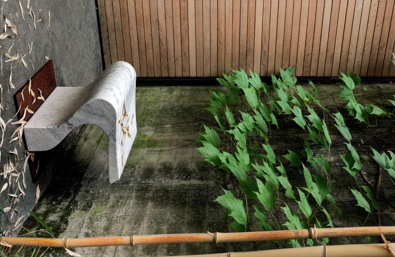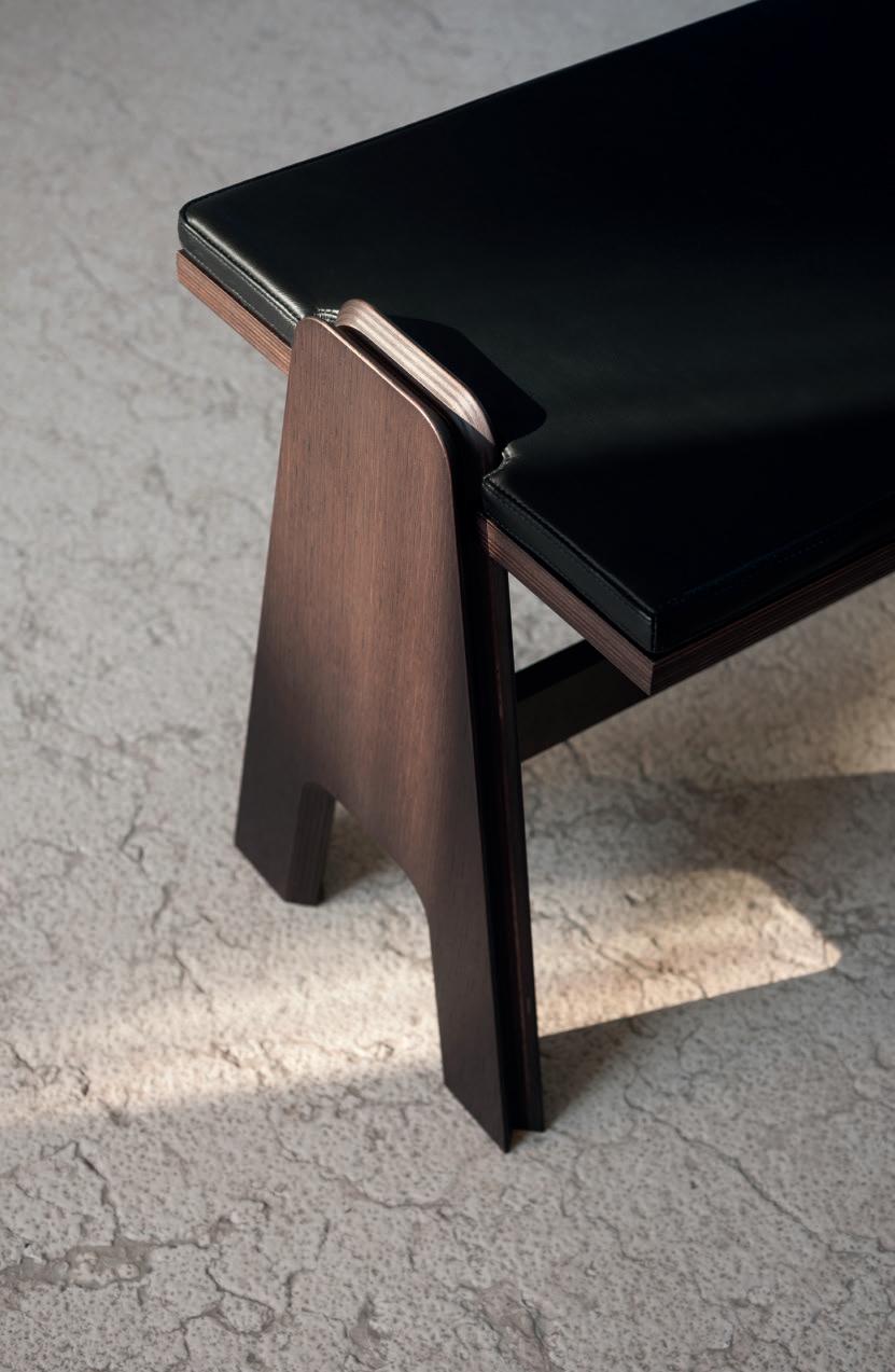 Immagini delle lavorazioni artigianali dei materiali: la levigatura manuale, la smussatura degli incastri del legno e degli elementi in pietra. Un passato contemporaneo che attinge dall’arte e dalla maestria italiana, rileggendola nel presente.