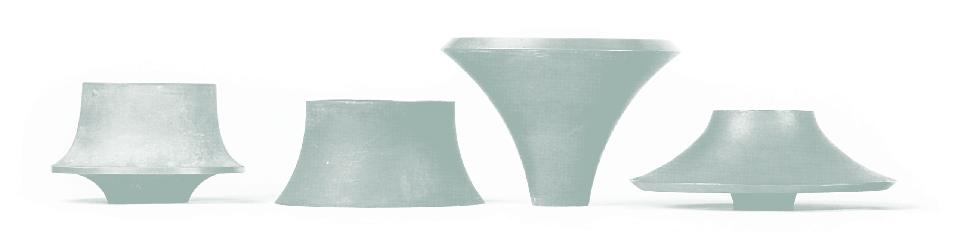 Vasi ricavati da fusione di bronzo con stampo a cera persa, superfici esterne trattate con patina di nitrato d’argento stesa a caldo, superficie interna e bordi lucidati.