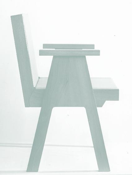 Seduta per interni con struttura in multistrati di betulla con finitura rovere naturale, bruno o scuro. Due versioni, con braccioli o senza. Rivestimento della seduta e dello schienale con cuscini in cotone disponibili in otto differenti tonalità. È possibile personalizzare il rivestimento con tessuti forniti dal cliente. Sviluppato e re-ingegnerizzato da Benedini Associati.