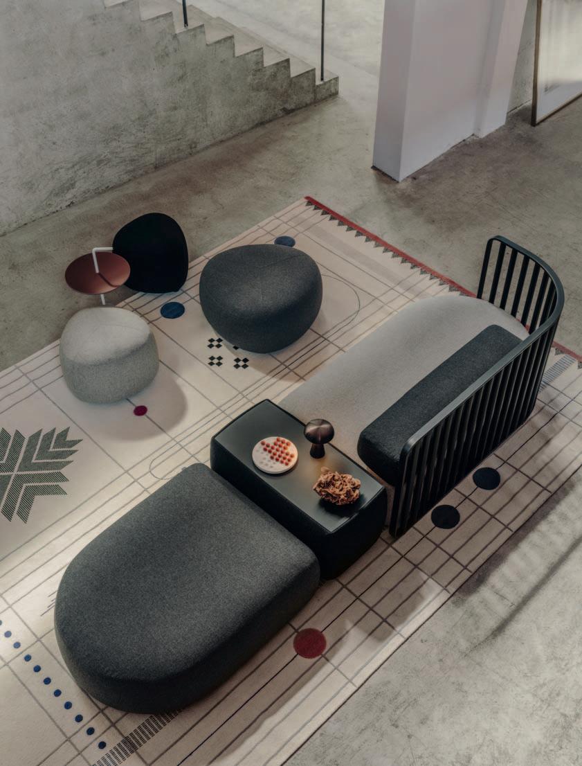 PLUS sofa, KIPU pouf, JEY side table, YO side table, OORT cushion