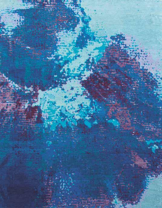 Hand-spun carded 85% fine wool and 15% natural silk, hand knotted quality, 100 knot/inch. Made in Nepal. Available in 4 colour versions.