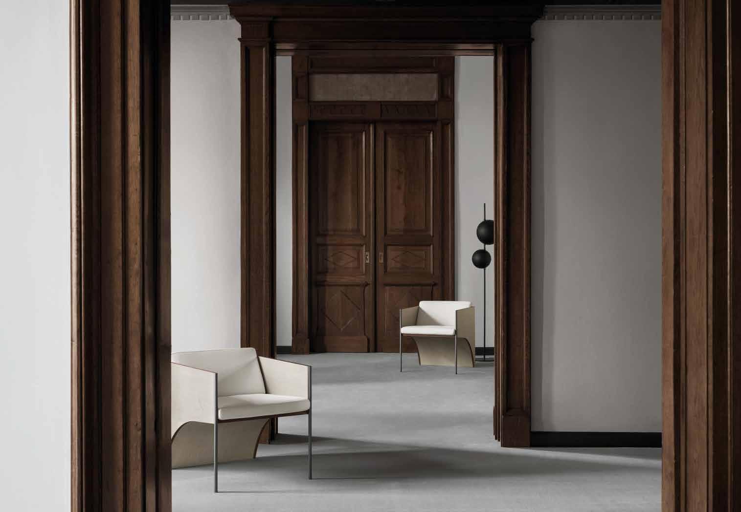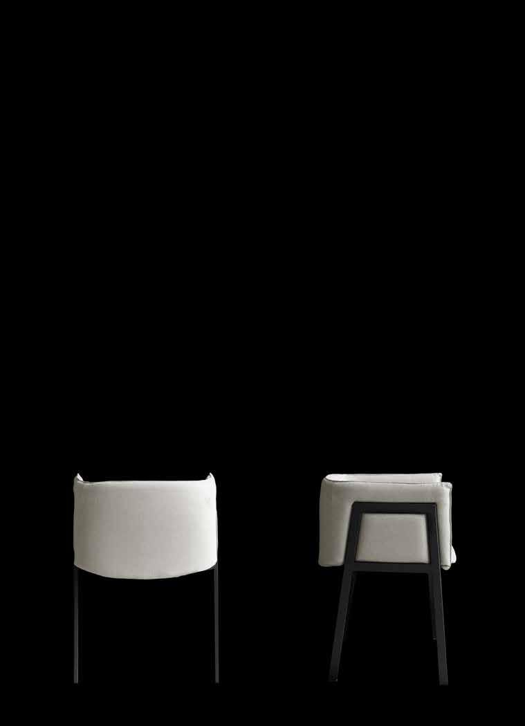 La poltrona Dumas si caratterizza per lo schienale basso, da cui emerge un morbido cuscino che si raccorda al bracciolo dolcemente curvato, nel segno dell’assoluta semplicità. The Dumas armchair features a low backrest, with its soft cushion, that is connected, in a gesture of absolute simplicity, to the gently curving armrest.