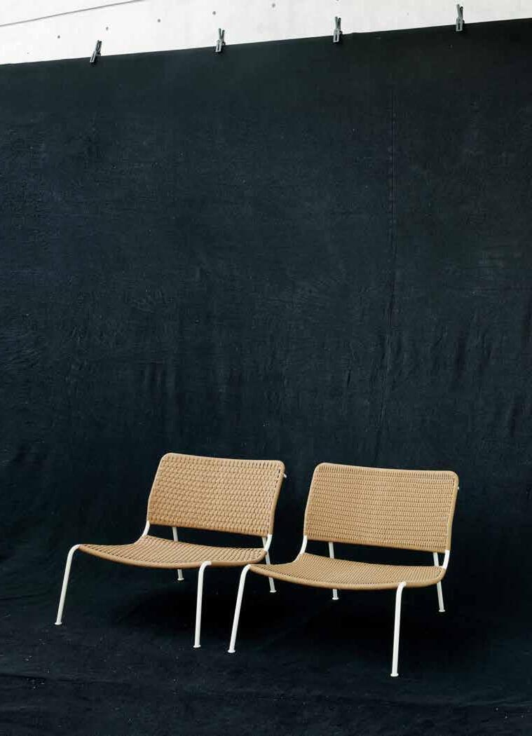 Tombolo, versione ready made della poltroncina Cafè progettata da Piero Lissoni nel 1999, emana una femminilità ricercata nei dettagli. Tombolo, ready made version of the Cafè armchair, designed by Piero Lissoni in 1999, emanates elegant femininity from its carefully embroidered details.