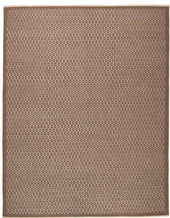 Hand-spun carded 85% fine wool and 15% natural silk, hand knotted quality, 100 knot/inch. Made in Nepal.