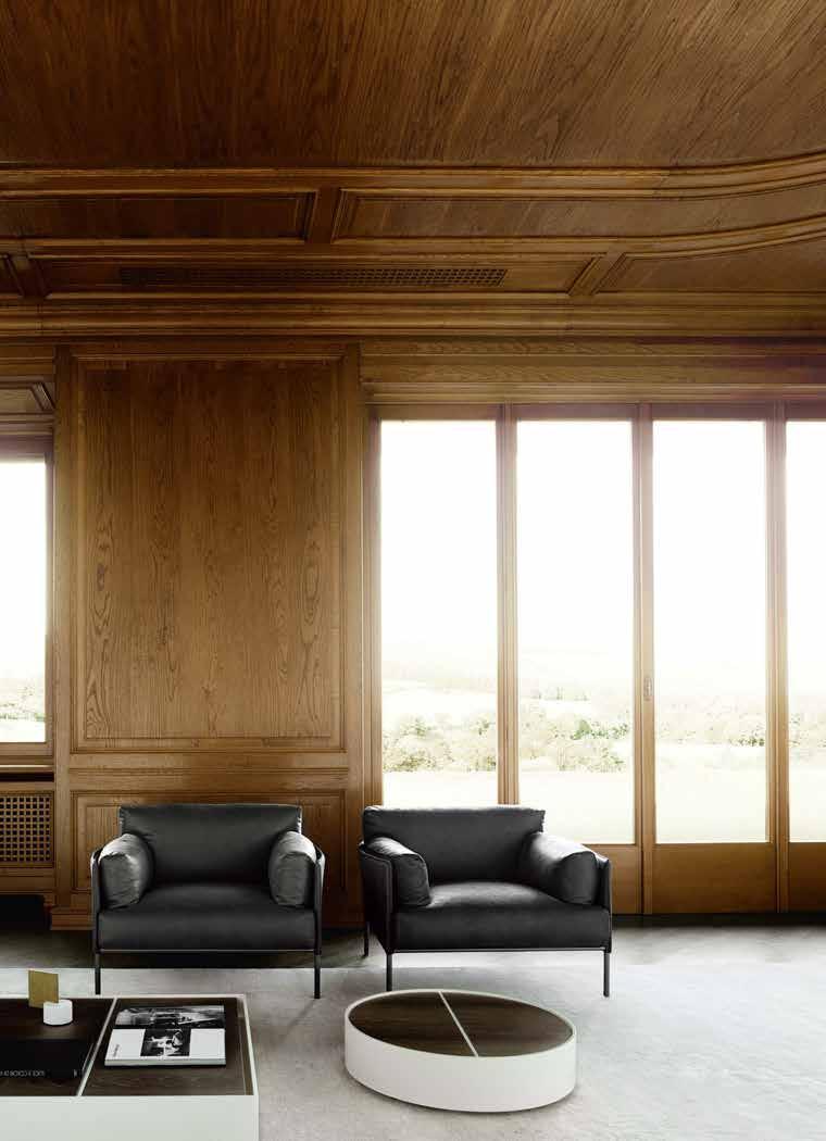 The same idea of comfort defined by squared lines, pure and rigorous, distinguishes the Clan Grande and Piccola armchairs.