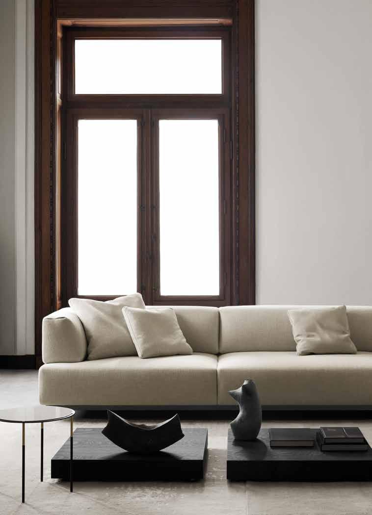 Greene sofa shows a structured, yet soft perimeter designed for welcoming ample cushions.