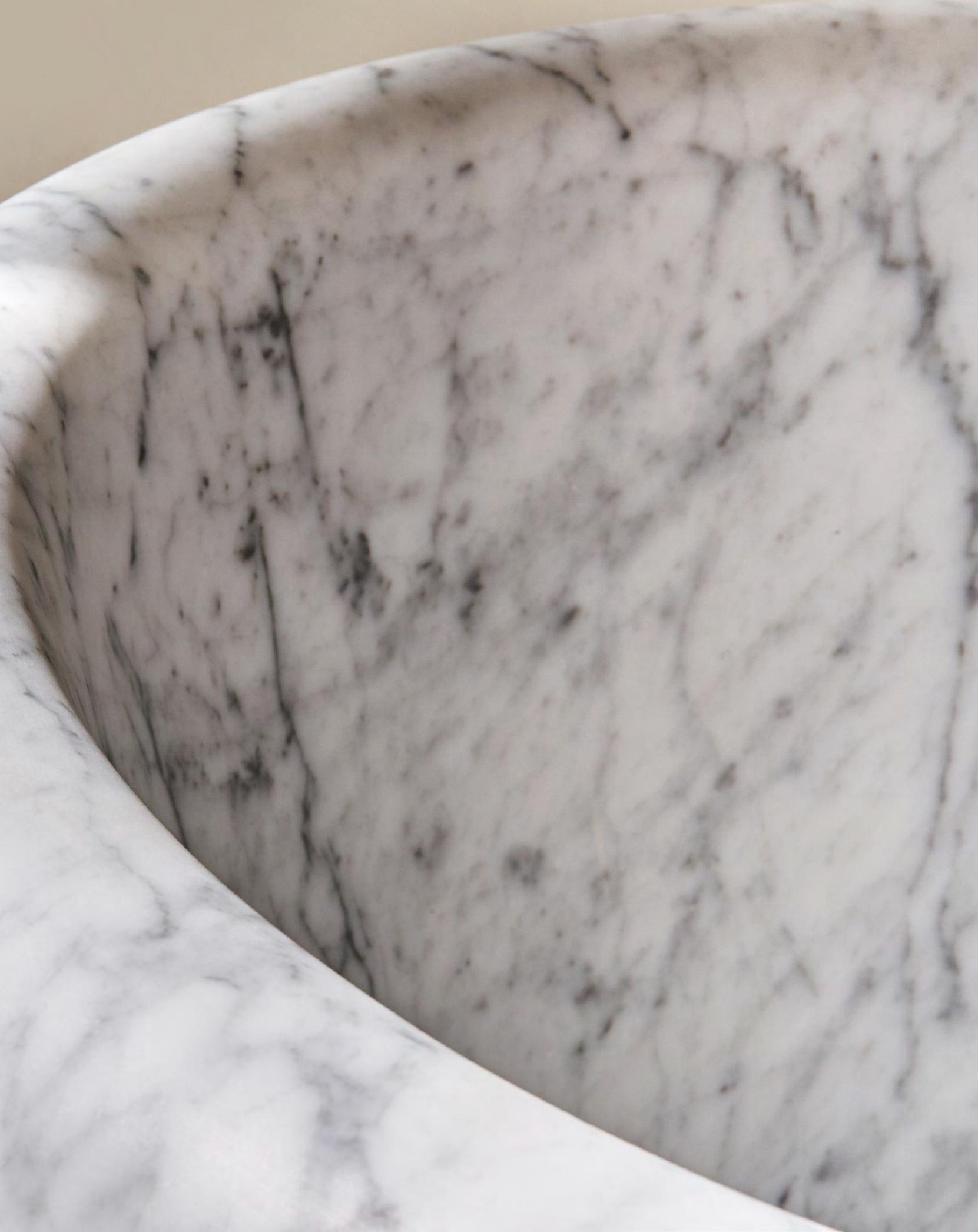 Sculpted by Italian artisans from a block of pristine Carrara marble, each Ibla bathtub is skillfully hand-finished, from the elegantly rounded rim to our signature branding at the base.