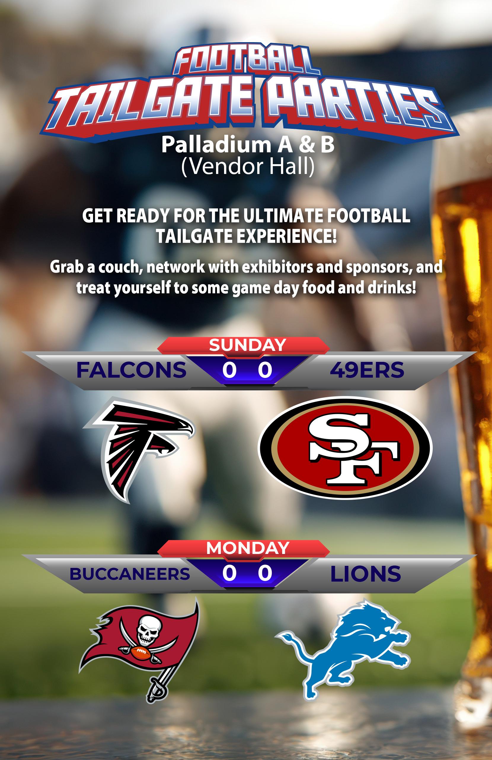Enjoy the Falcons vs. 49ers game while networking with exhibitors and sponsors, and treat yourself to some game day food.