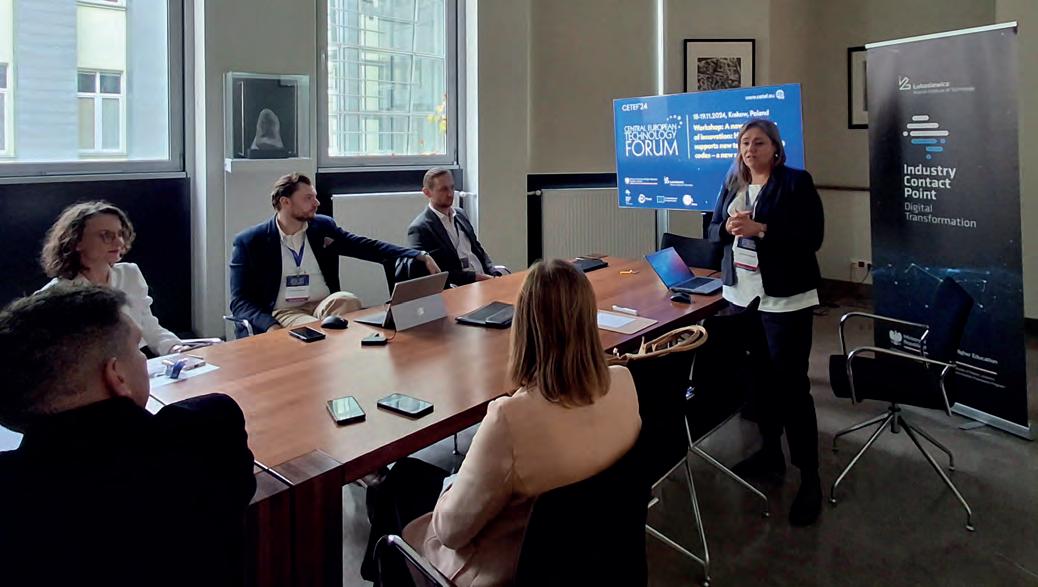 CETEF jest międzynarodowym przedsięwzięciem organizowanym przez Polską Izbę Gospodar czą Zaawansowanych Technologii IZTECH. Odbywa się pod auspicjami Komisji Europejskiej i pod patronatem Parlamentu Europejskiego, a współtworzą je uczelnie, instytuty badawcze i przemysł wysokich technologii. Forum, zorganizowane w dniach 18–19 listopada 2024 r. w Auditorium Maximum Uniwersytetu Jagiellońskiego i Kampusie Akademii Górniczo-Hutniczej im. Stanisława Staszica w Krakowie, było jednym z najważniejszych wydarzeń w Europie Środkowo-Wschodniej poświęconych innowacyjnym technologiom transformacji energetycznej, rozwojowi przemysłu i współpracy międzynarodowej w ubiegłym roku. Partnerami CETEF ’24 były Sieć Badawcza Łukasiewicz – Przemysłowy Instytut Automatyki i Pomiarów PIAP oraz Branżowy Punkt Kontaktowy Przemysł 4.0. Na stoisku wystawienni-