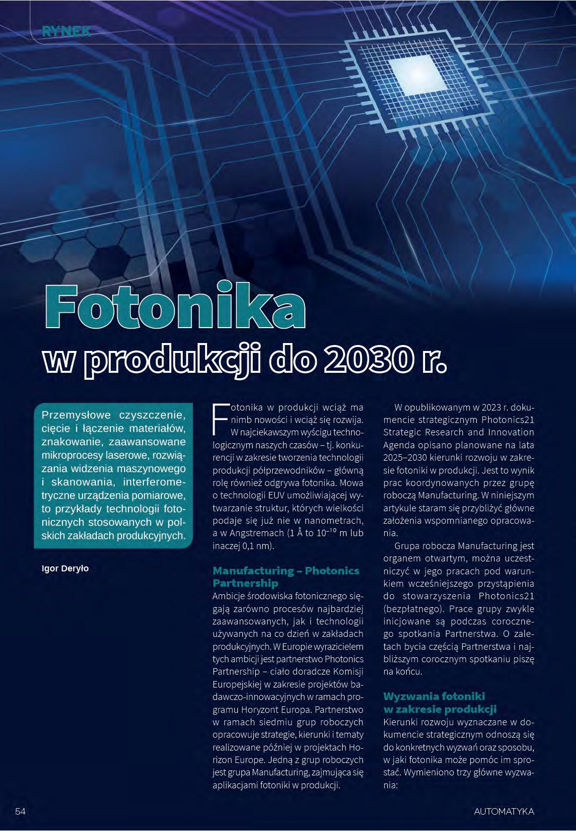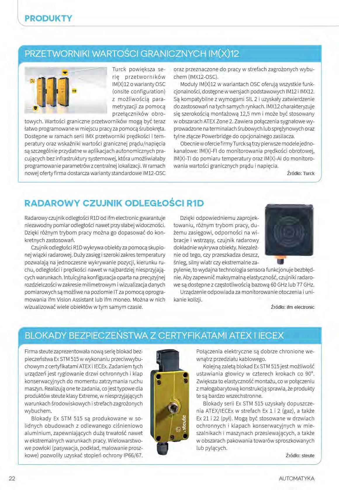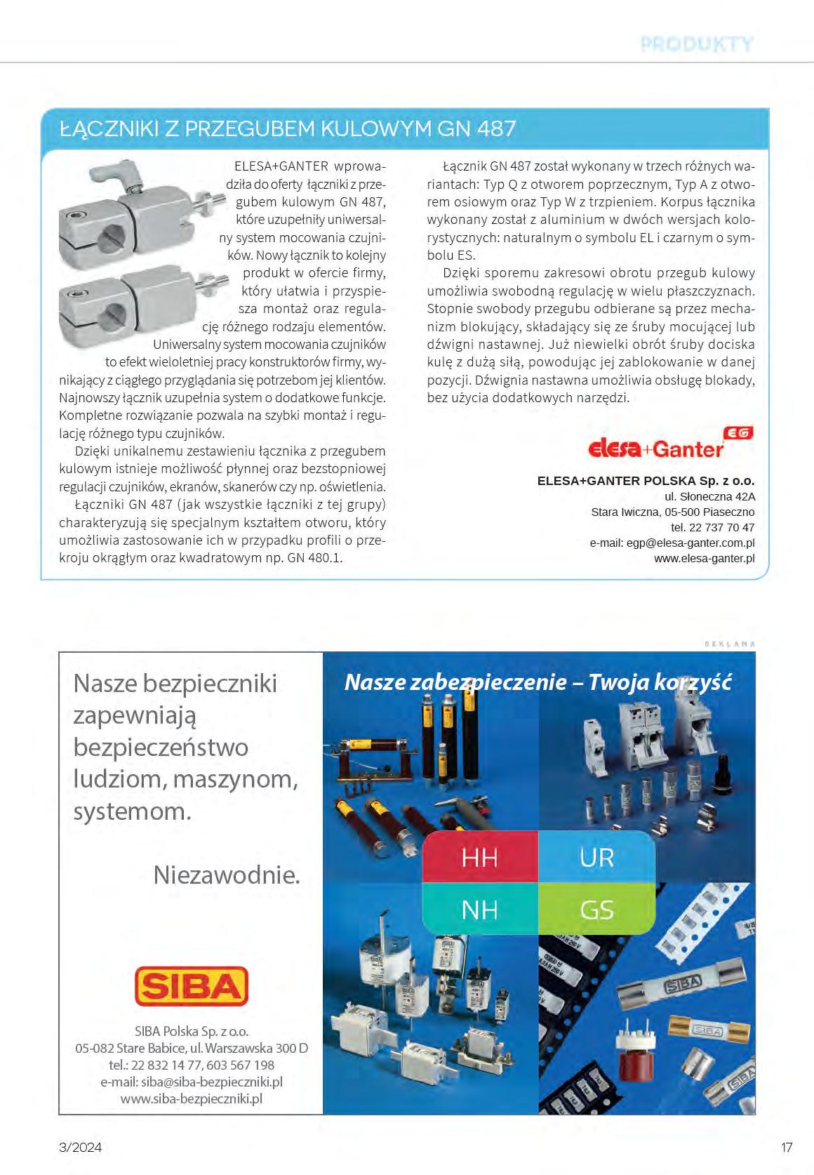 Zapraszamy do zapoznania się ze stałymi formatami redakcyjnymi naszego pisma. Temat numeru poświęcony jest odnawialnym źródłom energii, których stosowanie wymusza polityka energetyczna Unii Europejskiej. W artykule przeczytamy o tym, jak firmy dostosowują się do zmieniających się warunków prawnych i rynkowych. Uzupełnieniem jest materiał o rozwiązaniach stosowanych w magazynach energii, gdzie krok po kroku podano sposób doboru bezpieczników zabezpieczających urządzenia, które zasilają w energię kluczowych odbiorców. W przeglądzie sprzętu i aparatury wiodącą tematyką jest stosowanie systemów wizyjnych, które wraz z systemami identyfikacji umożliwiają precyzyjną kontrolę procesu produkcyjnego.
