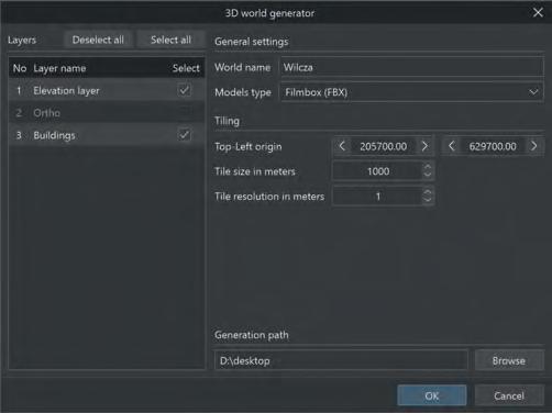 W artykule skupiono uwagę na problemy związane z generacją świata 3D dla symulatorów kolejowych. Przedstawiono i opisano proces tworzenia wirtualnego świata 3D. W ramach realizacji projektu „Innowacyjna technologia tworzenia środowiska dla różnego typu symulatorów pojazdów lądowych i wodnych” powstało rozwiązanie wspierające proces generowania wirtualnego świata 3D dla symulatorów kolejowych. Zaprezentowane rozwiązanie łączy metody detekcji i klasyfikacji (sieć neuronowa) oraz dokładne dane geolokalizacyjne (na podstawie danych GPS) w celu dokładnej identyfikacji i rozmieszczenia elementów w wirtualnym świecie 3D. Rozwiązanie to usprawnia proces tworzenia świata 3D zarówno na etapie przygotowania danych jak i na etapie samego modelowania.