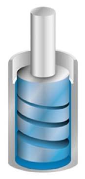 Un alt avantaj al tehnologiei canalului spiralat este ghidajul cu piston hidrostatic. În timpul amortizării uleiul se scurge prin canalul spiralat astfel existand ulei între piston și manșonul presiunii în timpul întregii curse. Piesele mobile sunt ținute separat unele de altele printr un film lubrifiant care minimizează uzura. Prin urmare, sistemul garantează o execuție de lungă durată și fiabilitate ridicată pentru îmbunătățirea siguranței în timpul producției