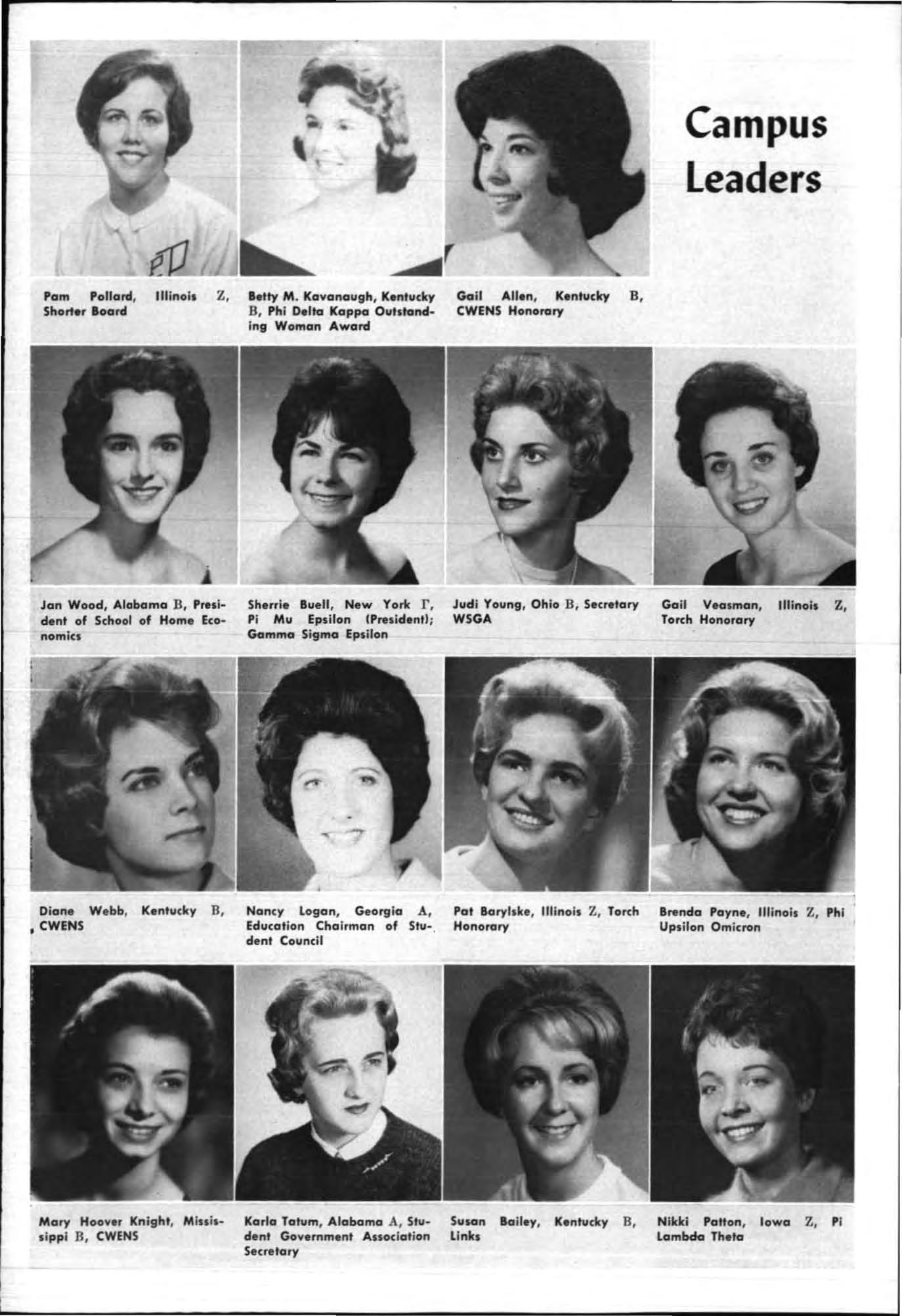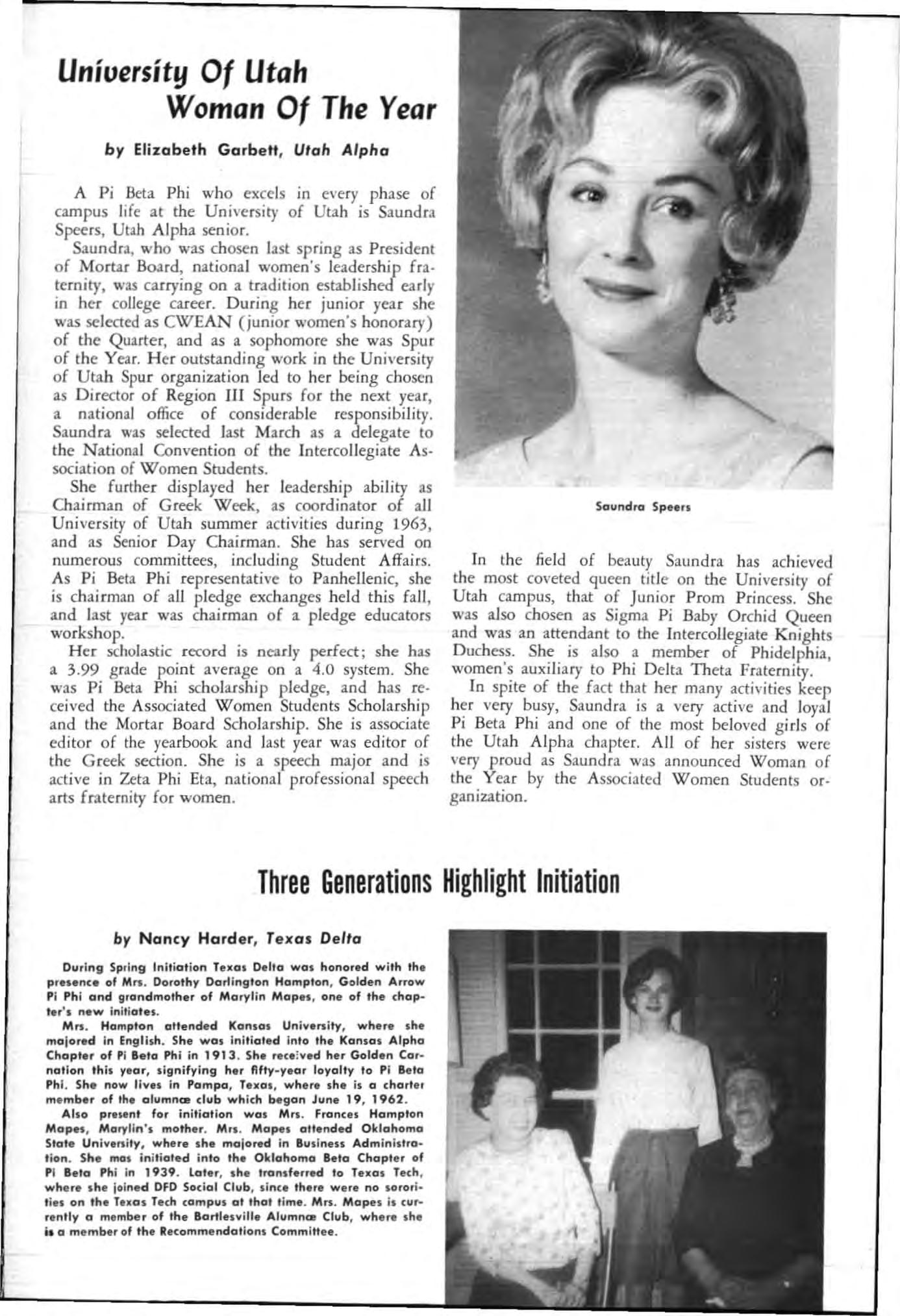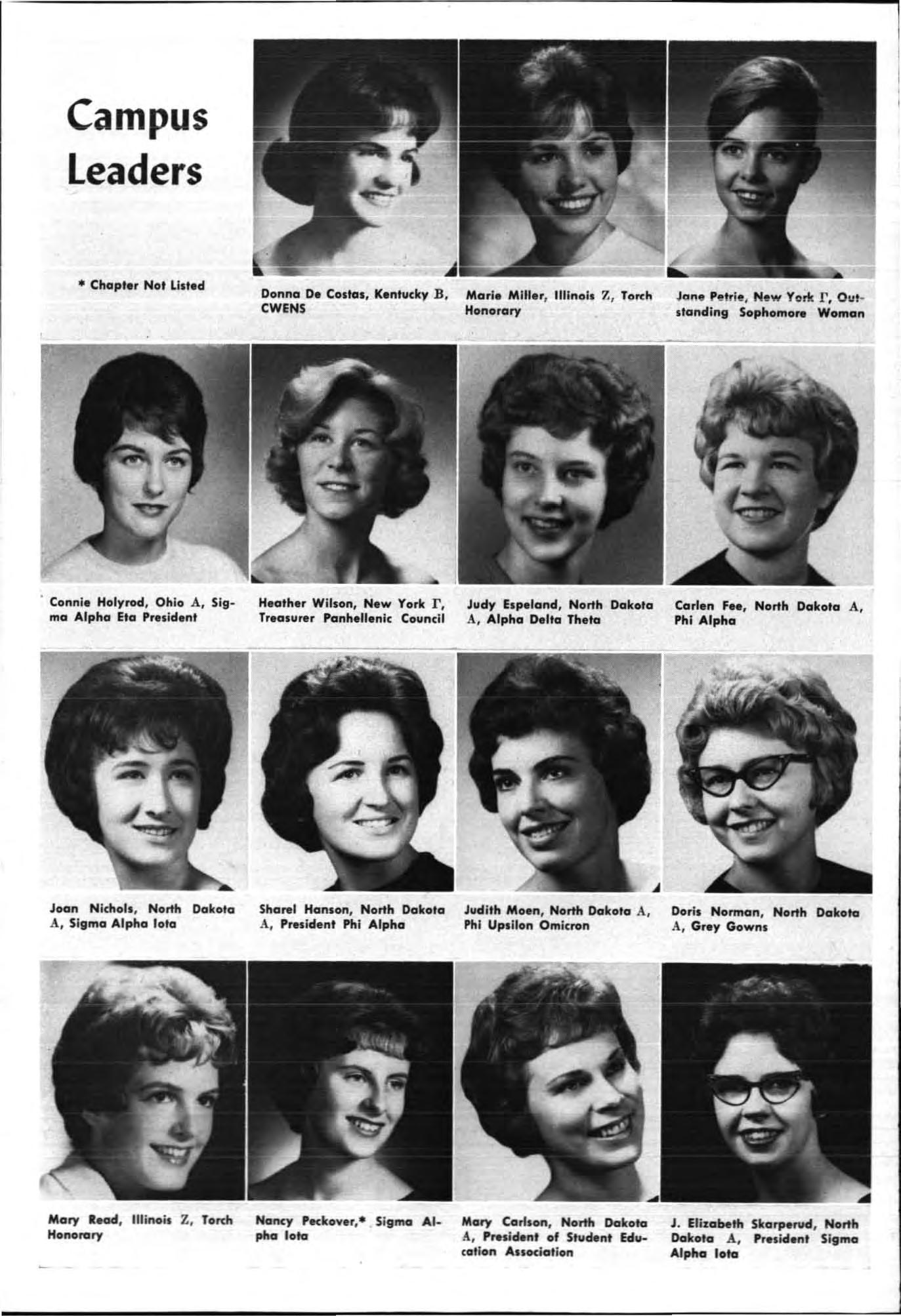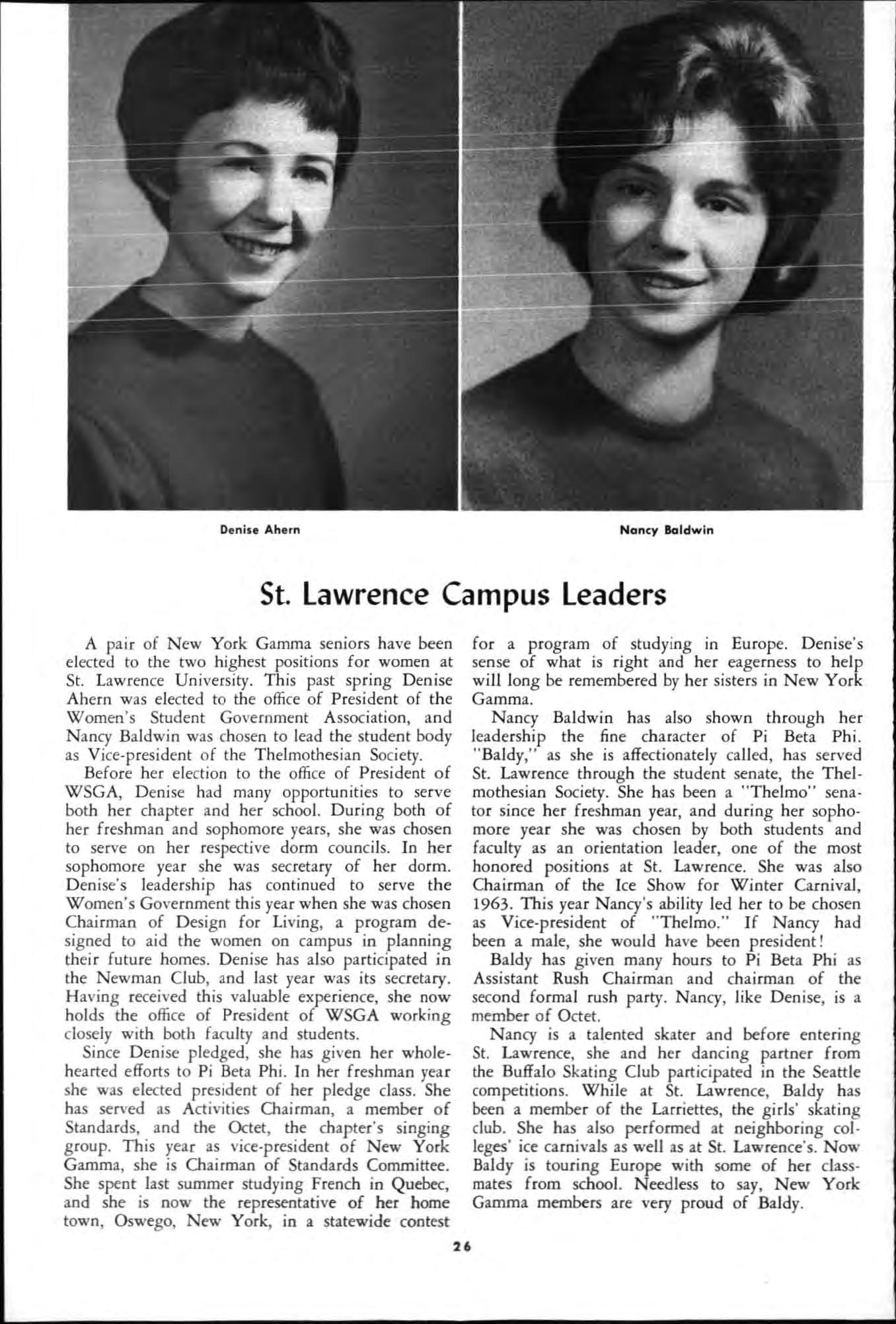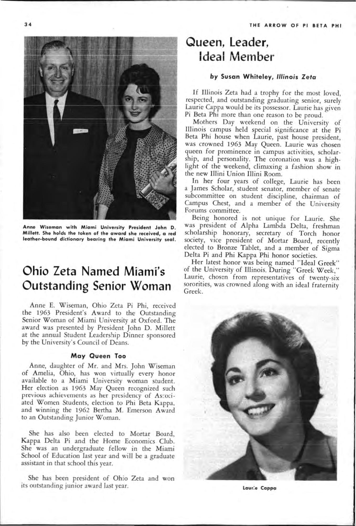 Both young women had served their charters as president and both had demonstrated unusua abi li ty in I;'romoting chapter spirit and unity, in the areas of Individual responsibility and initiative and had led their chapters to hi g he r lev els of accomp li s hment during the yea c.