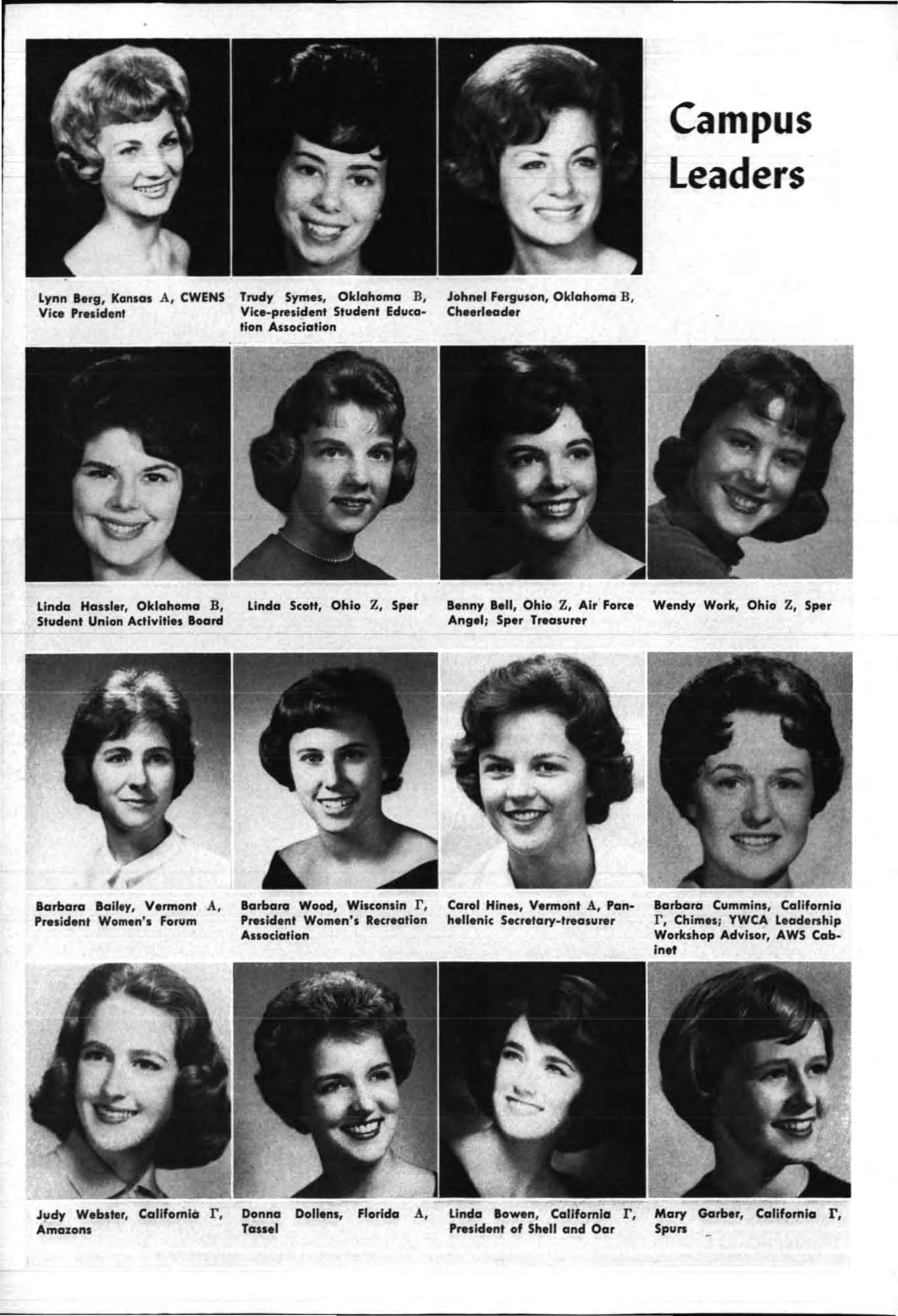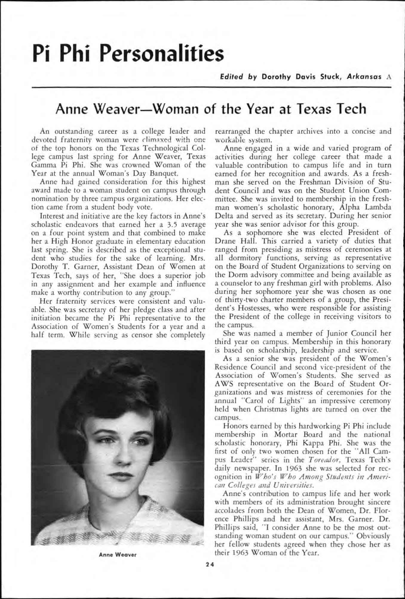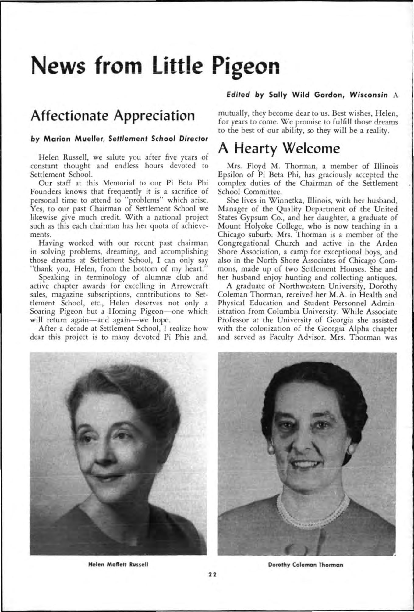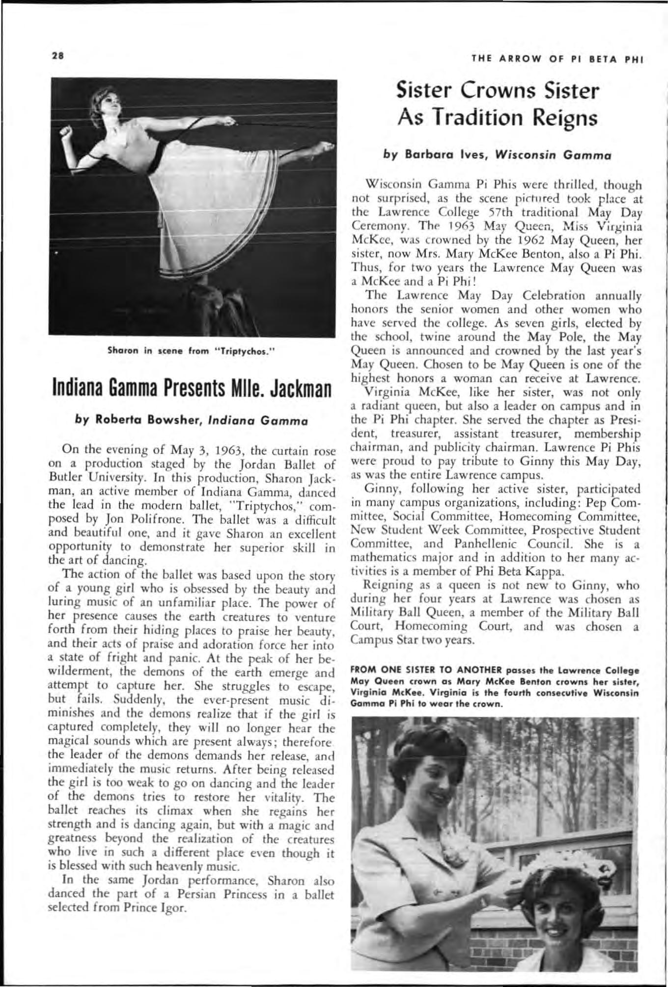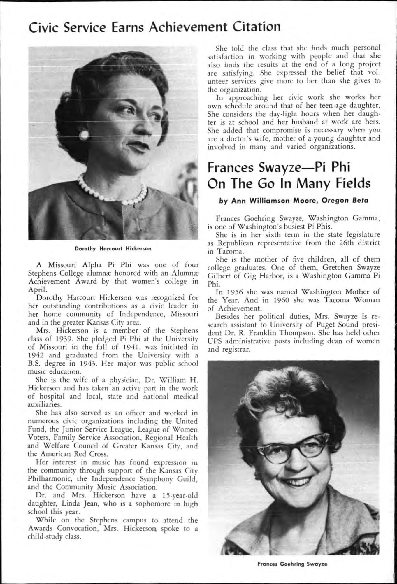 Both young women had served their charters as president and both had demonstrated unusua abi li ty in I;'romoting chapter spirit and unity, in the areas of Individual responsibility and initiative and had led their chapters to hi g he r lev els of accomp li s hment during the yea c.