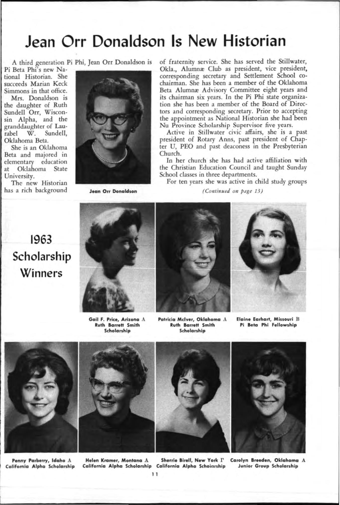 Ruth Barre tt Smith Scholarships- Pat r icia M cI ver, O klahoma Alpha; Gai l P rice, Ar izona Alph a.