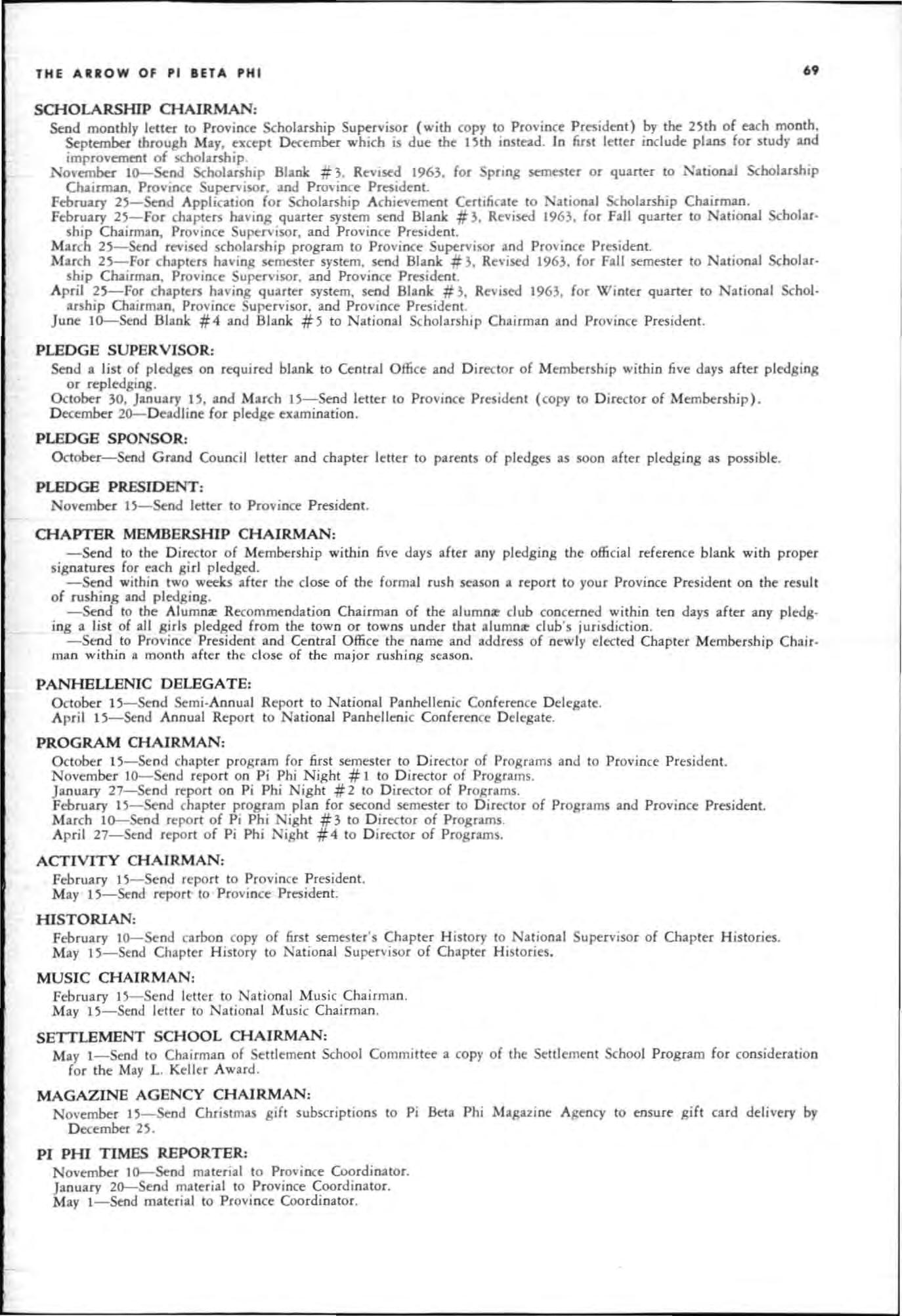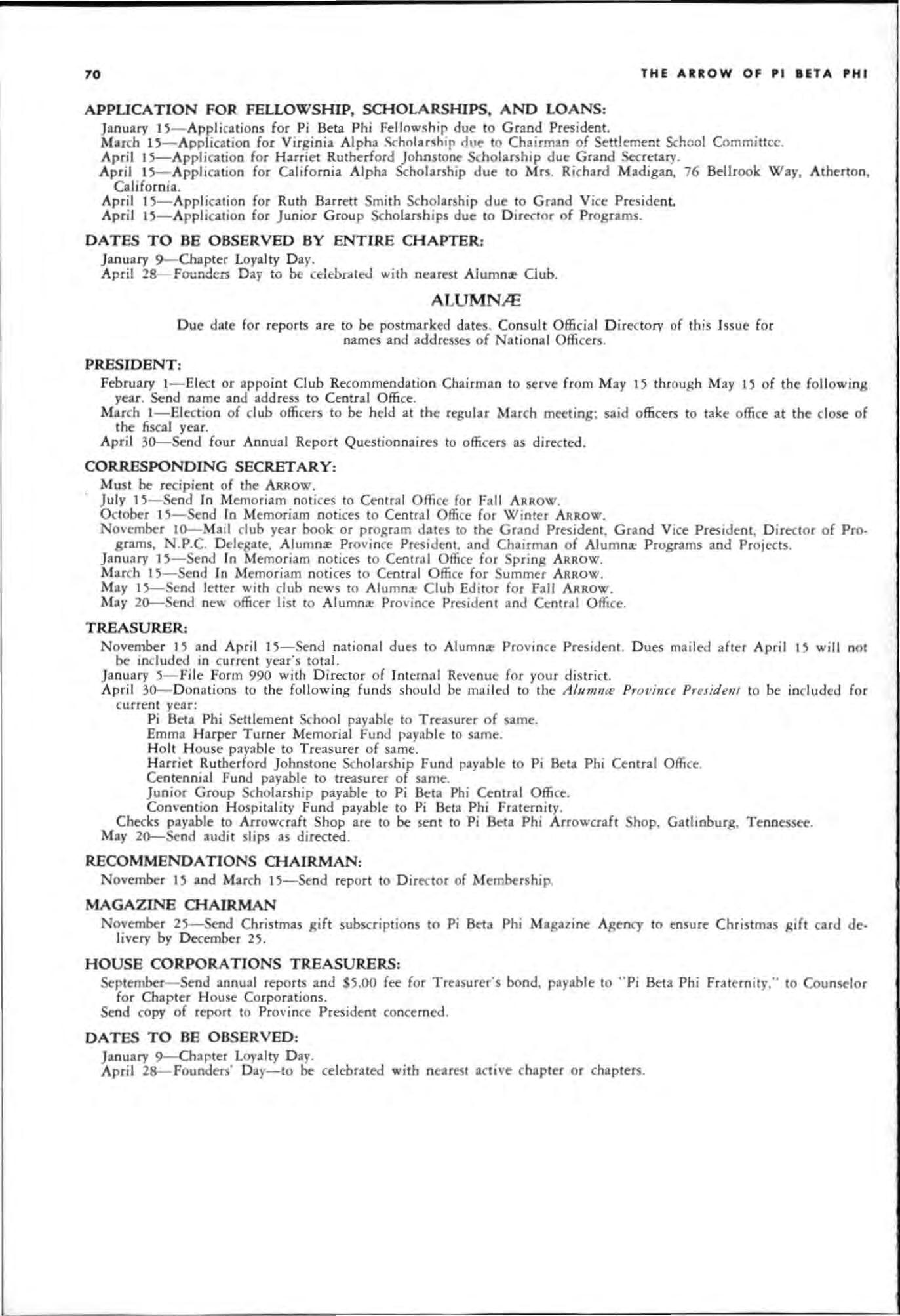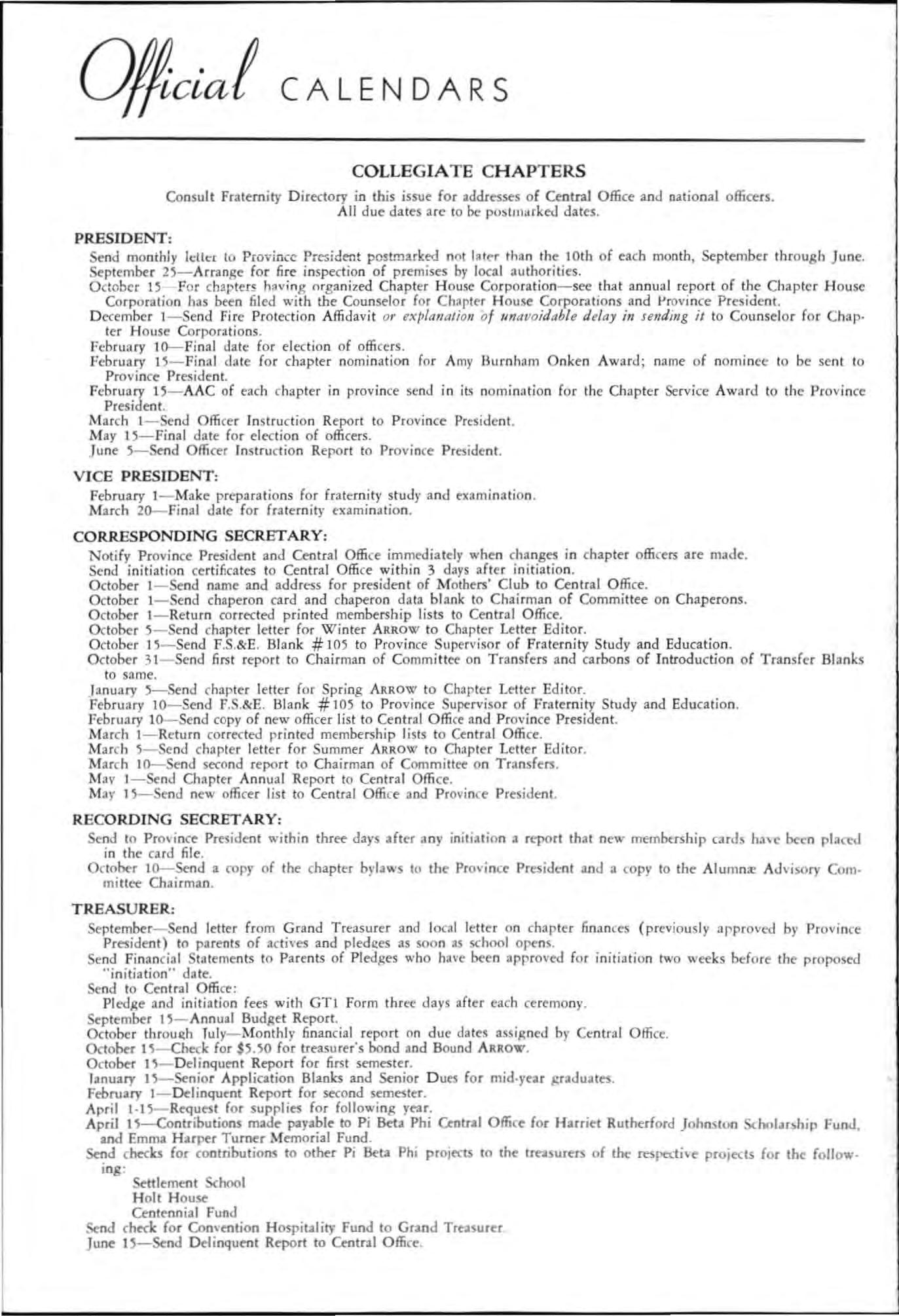 May 15-Se nd letter with club news to Alu mna: Club Editor for Fall ARROW M ay 2D-Send new offi cer l ist to Al umna: Province President and Central Office