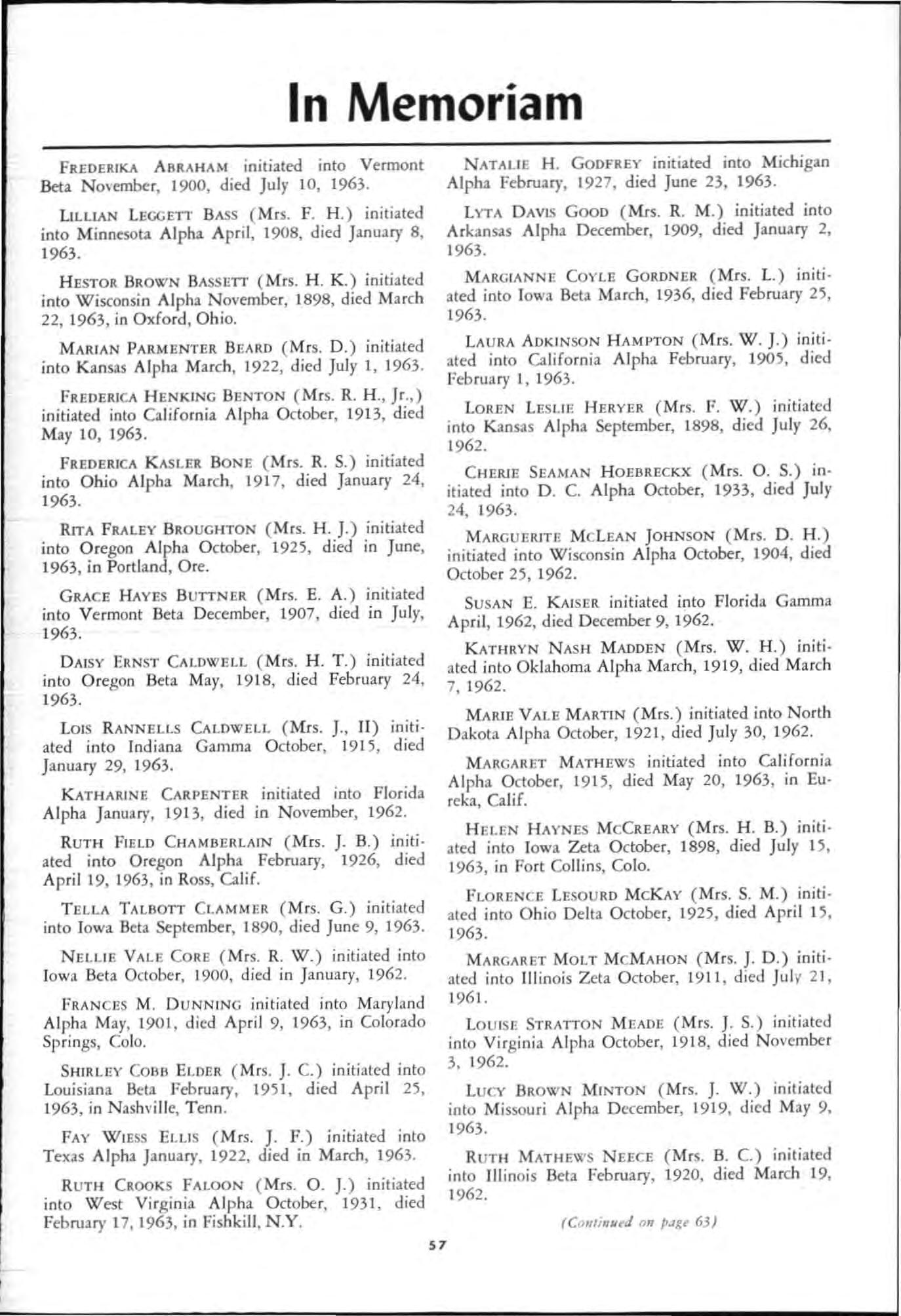 111 Mem oriam N Oliur: Send to Pi Beta Phi Crntral Offi ce, 250 N. Water t. , Rm 26-1, Decatur, III.