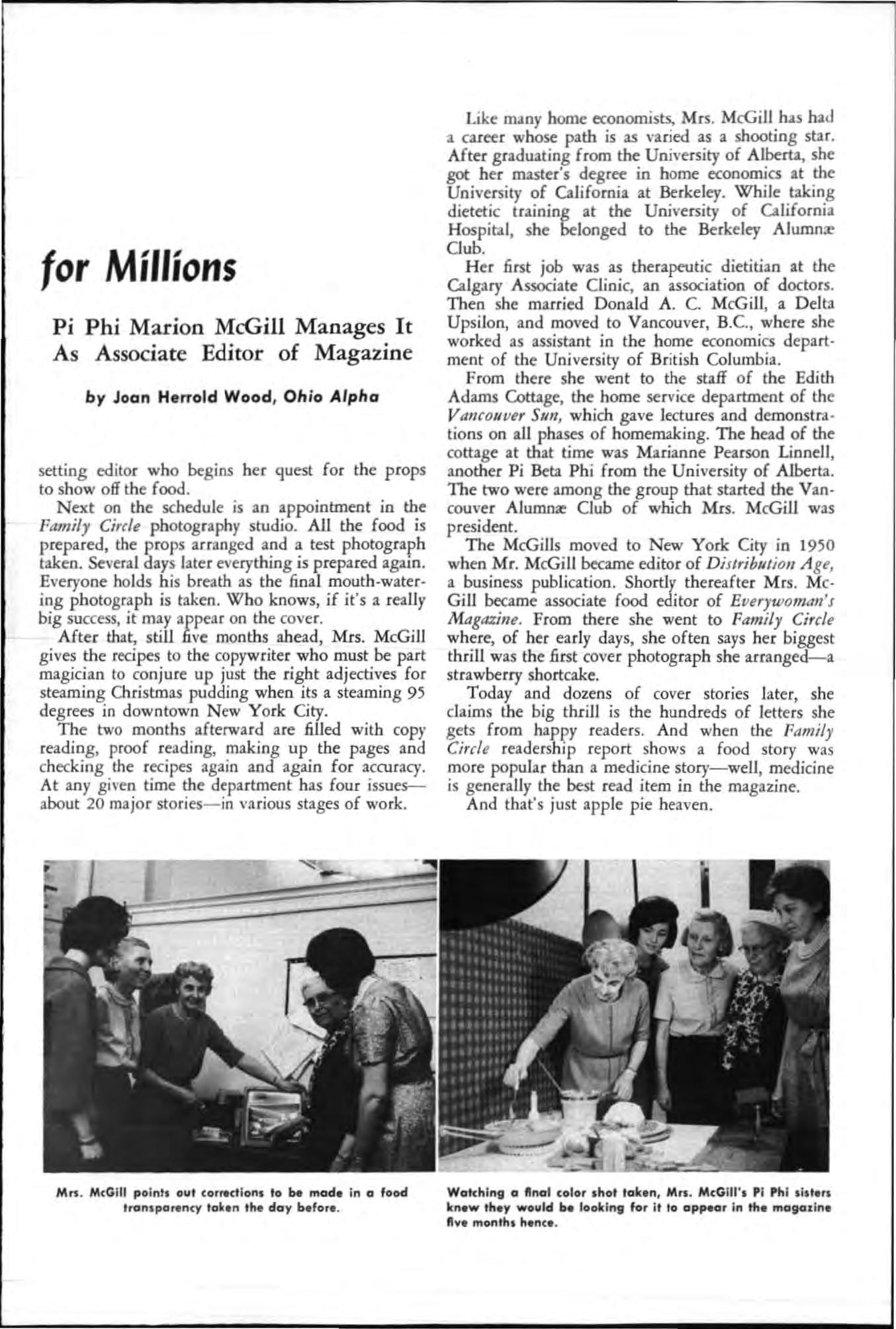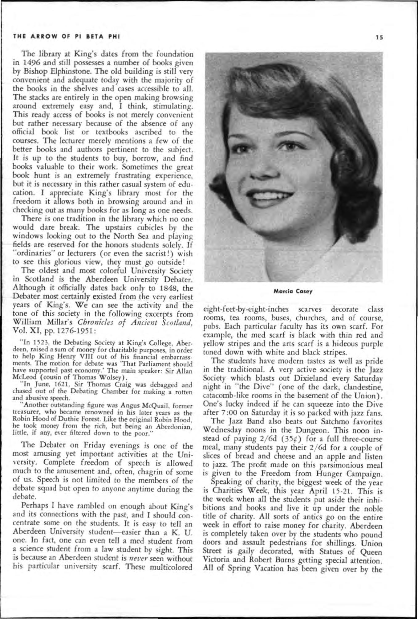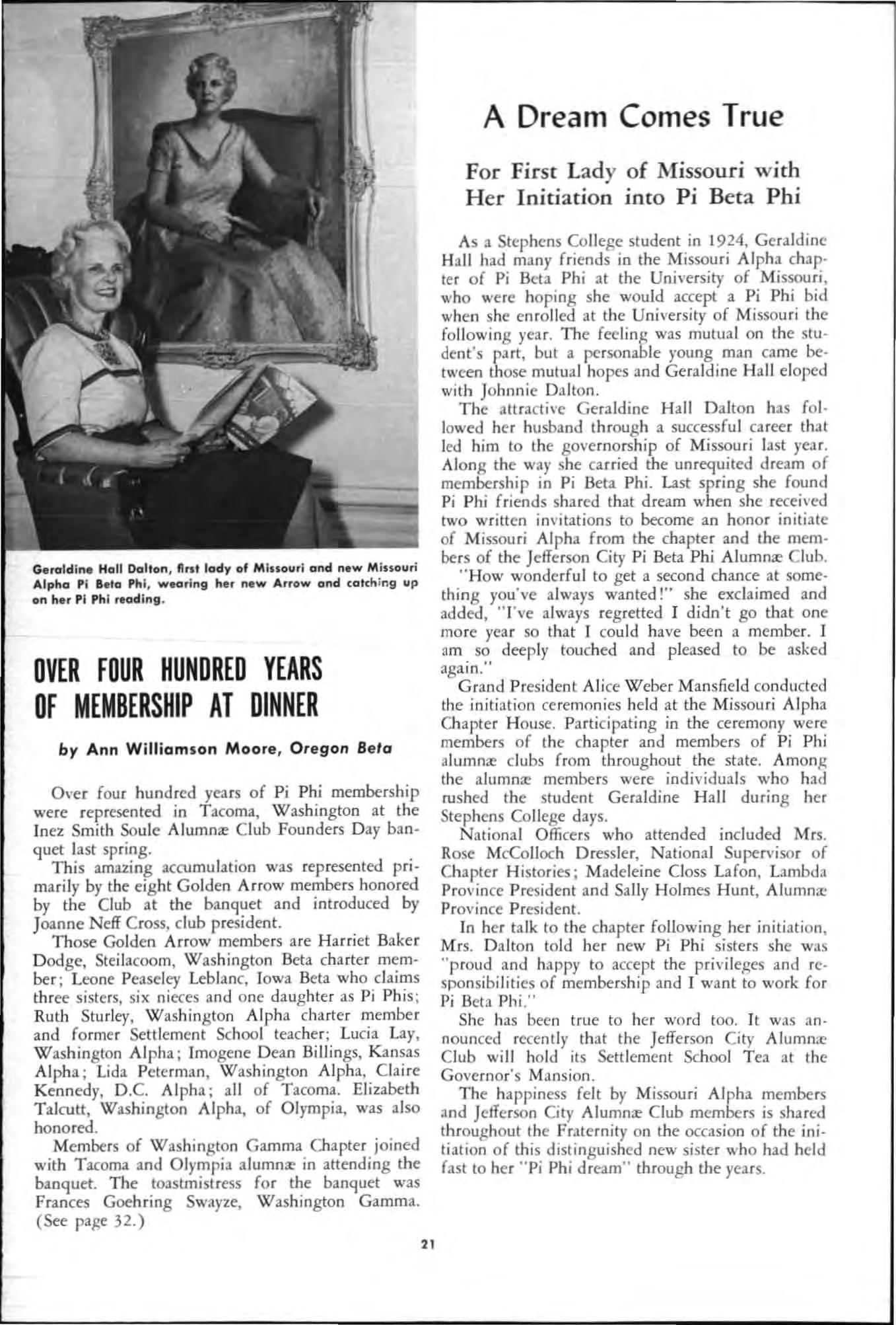Marian Simmons sha red generous ly the of a brilliant mind to bring a new dimension to the hi story of Pi Beta Phi Her peerless presentations in her programs at co nventions and reso urceful ca taloguing of Pi Phi memorabilia are enduring s ifts that will bear fruit through years of hi story yet to be re· corded and that will assure her a place of high esteem and warm regard in the hearts of all Pi Phis.