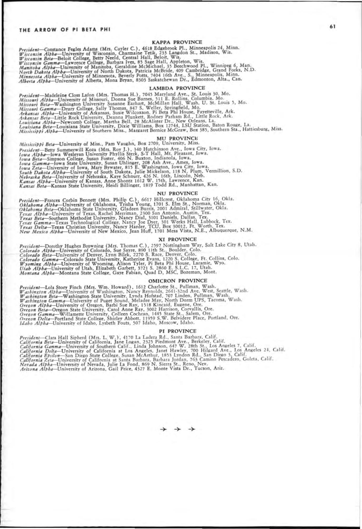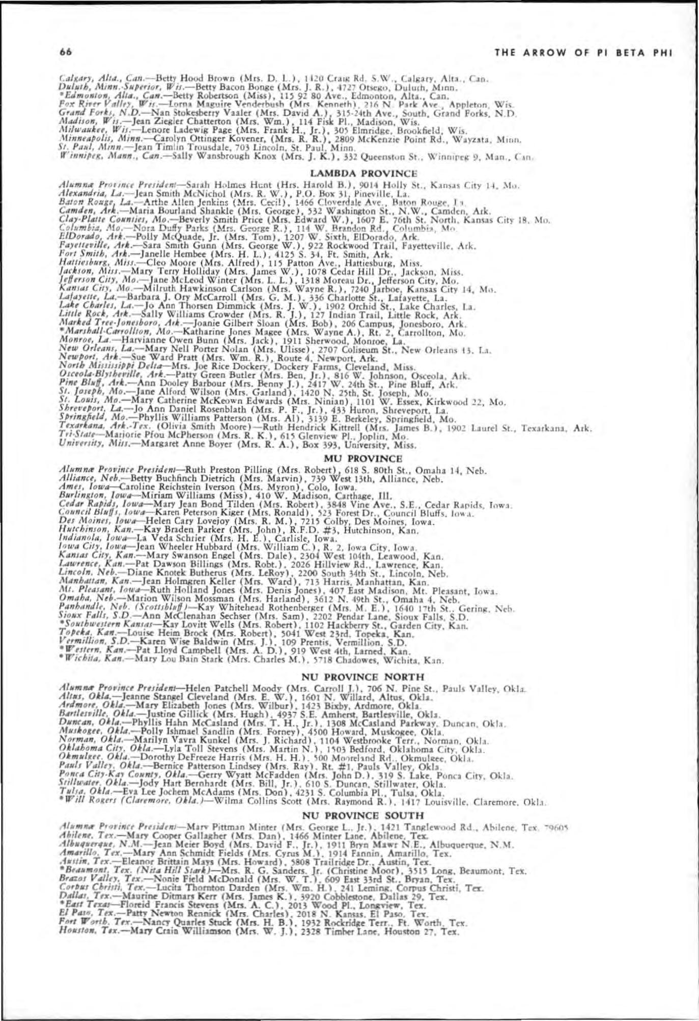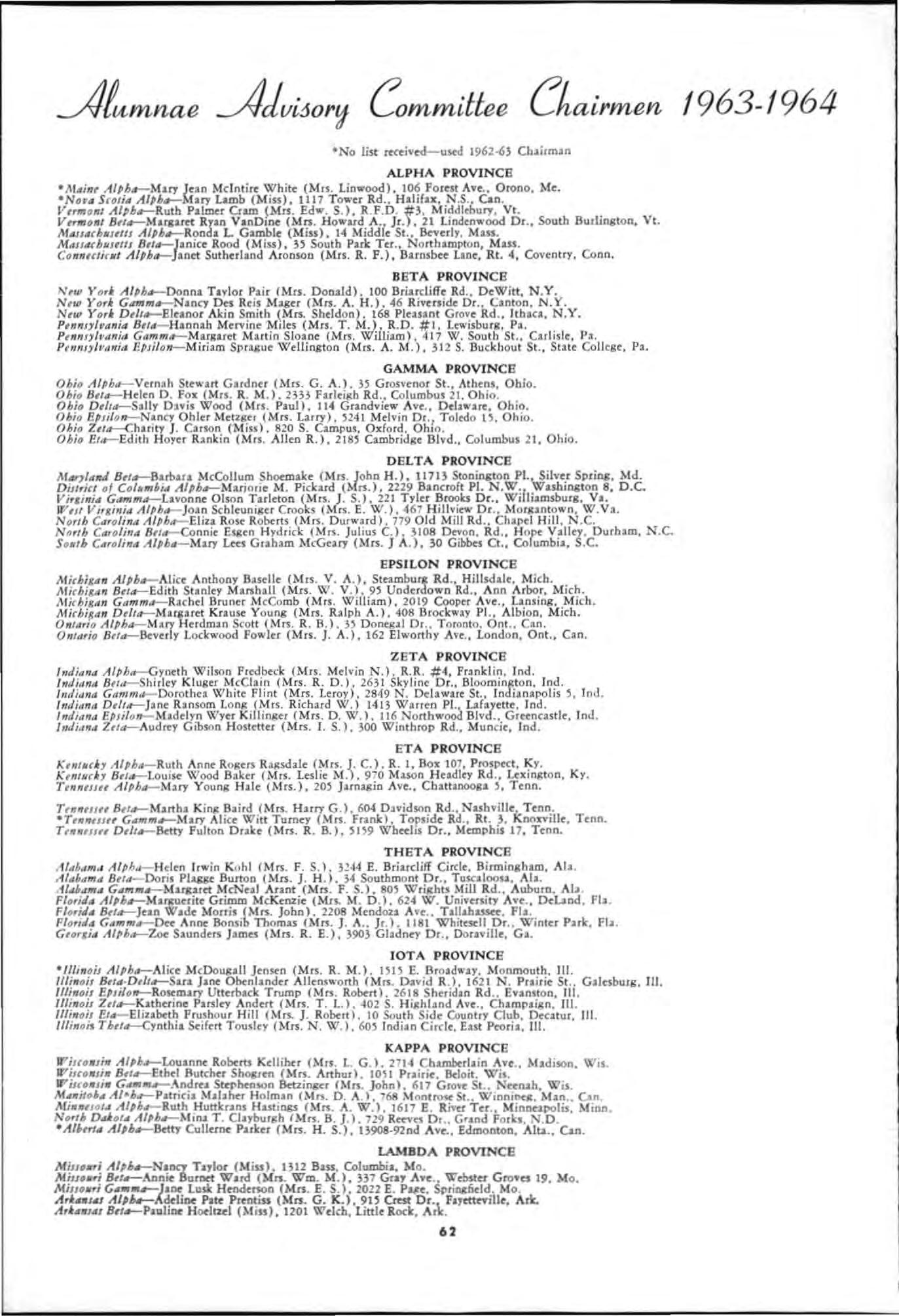RegiSlrJtlon ChllfmJn-Betty Jonstone LeFroy (Mr.;. P A). Alberta Alpha. 2169 West 54th Ave Vancouver 14. B.c., Can,d,