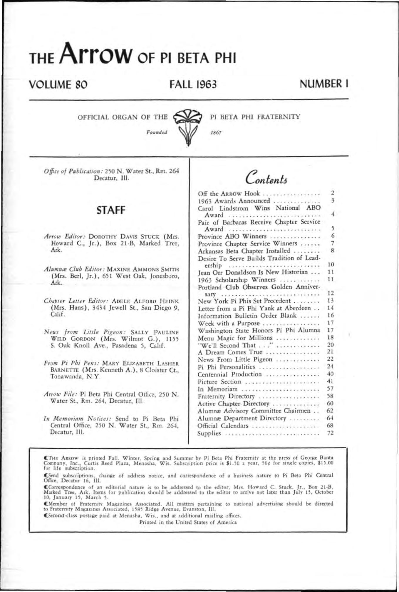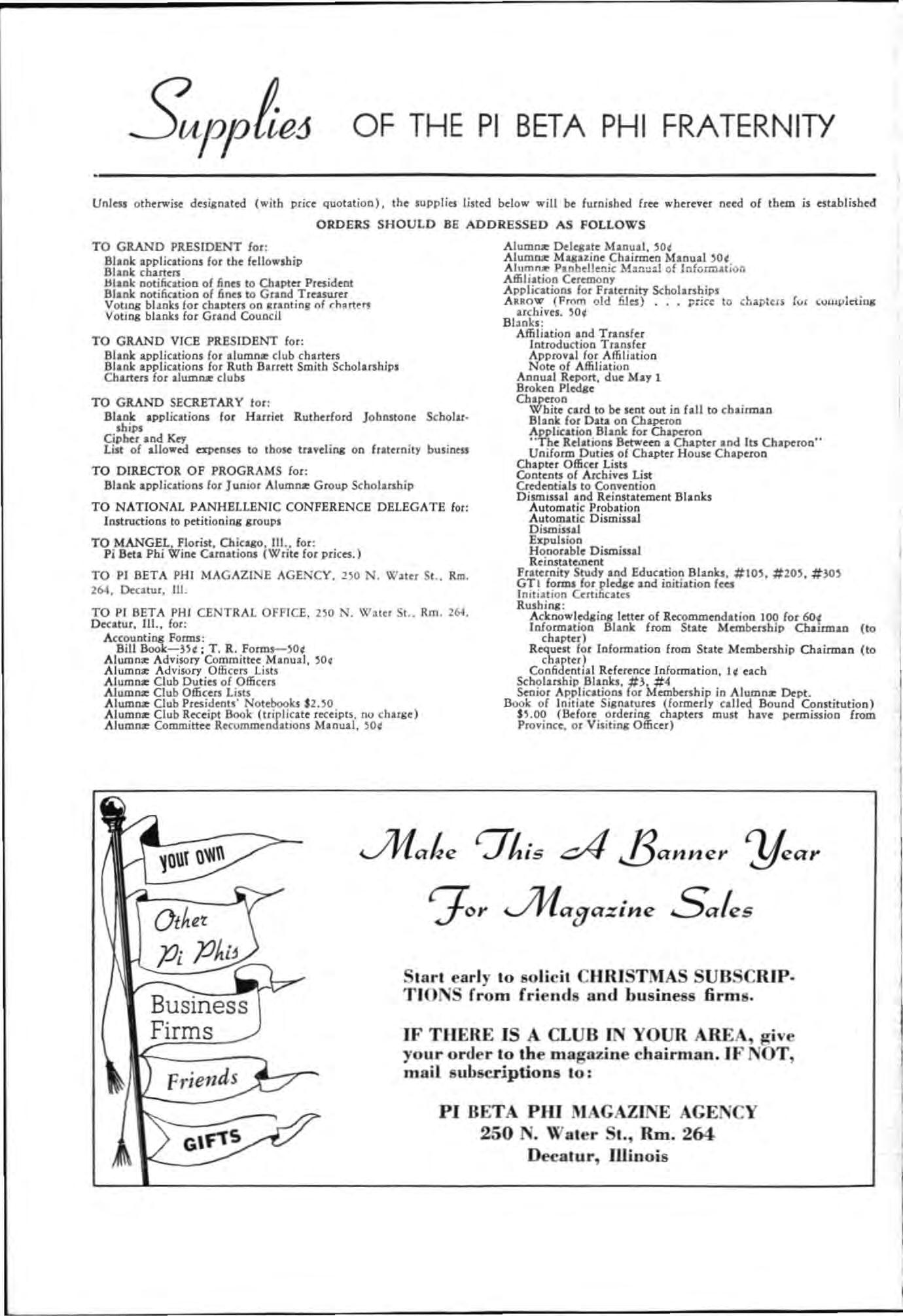 G.Send subscriptions, chanse of address no t ice. and co rresPOndrnce of II. busrneu naturr to Pi 8c1a Phi Centtll OlJicr. Decatur 16. Ill.