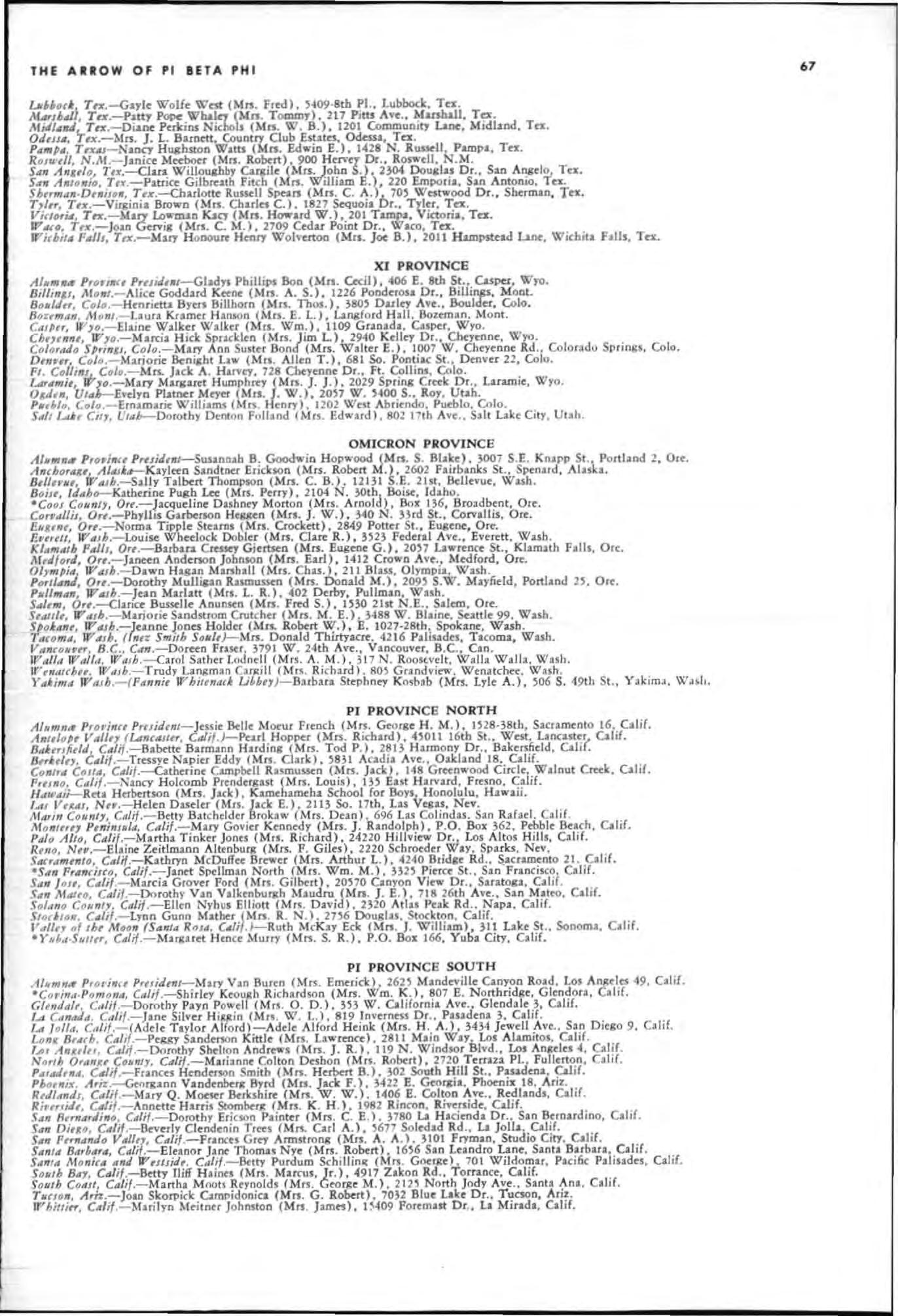 Catifo rnia Alpha Scho larships-H e len Kram er, Montana Al p h a; Sherrie Buell , New Yo rk Gamma ; P e nny P arbe rry, Ida h o Alpha