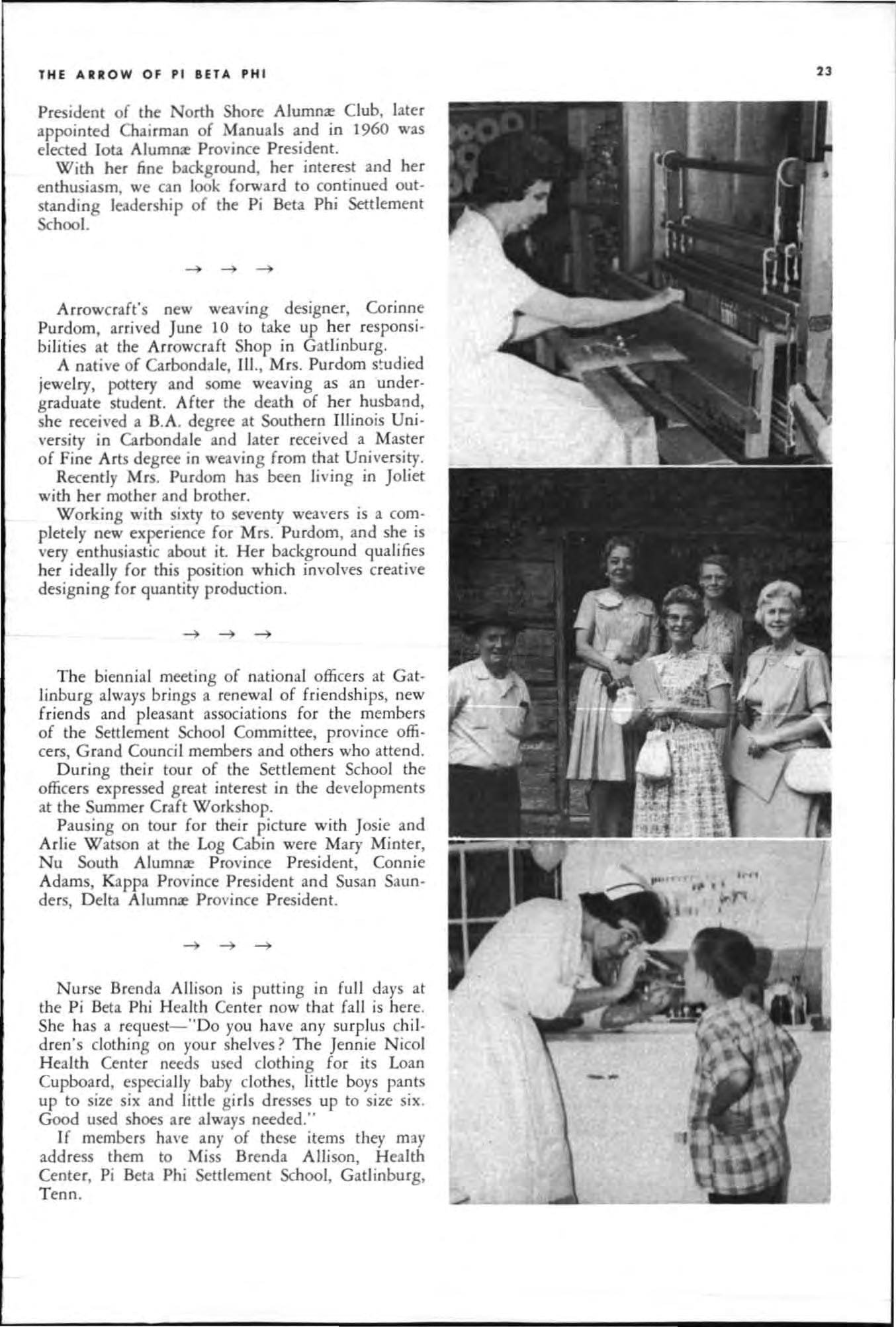 It is a credit to the Fraternity that the new offi cers are also resourceful, talented members with back· g rounds of experience in seve ral areas of Pi Phi and that they are capable of continuing the work of their predecessors without a break in the thread of service from those offices.