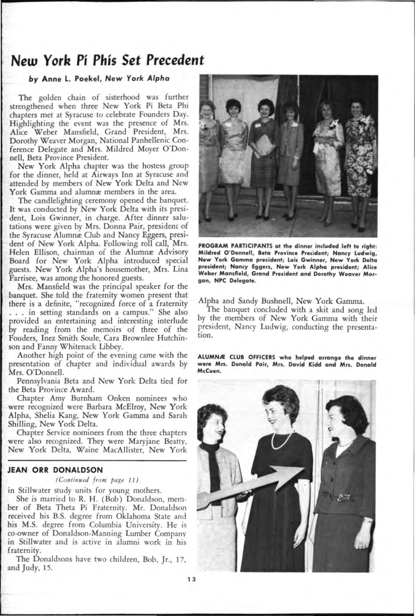 Alice W eber Man s field Awa rd (by St. Louis Al umn", Club) (Jointly)-Kansas Al p h a and Oklahoma Al p h a.