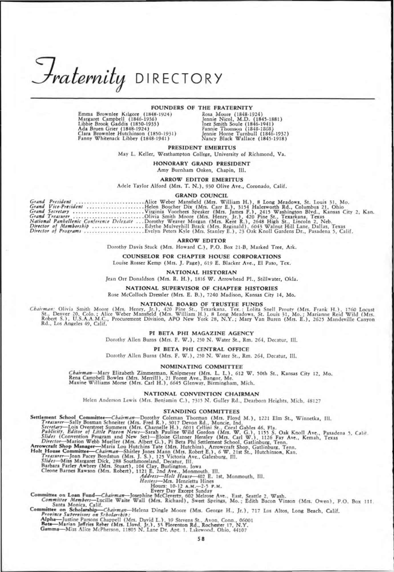 AffOW Fil e: Pi Beta Phi Central O tficc, no N Water St., Rm 264, D ecatur, III.