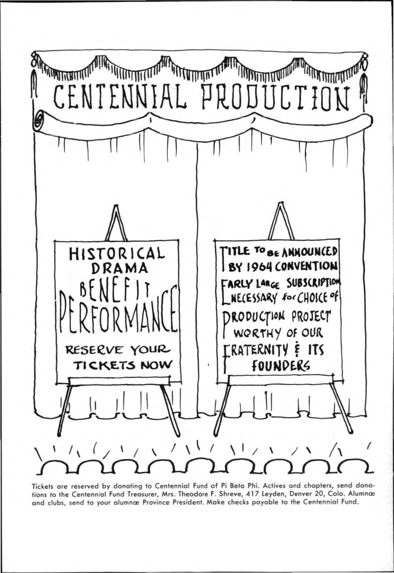 H arriet Ruther ord Johnstone Scholarship Fund payab le to Pi Beta Phi Central Office . Centen n ial Fund payab le t o treasurer of same.