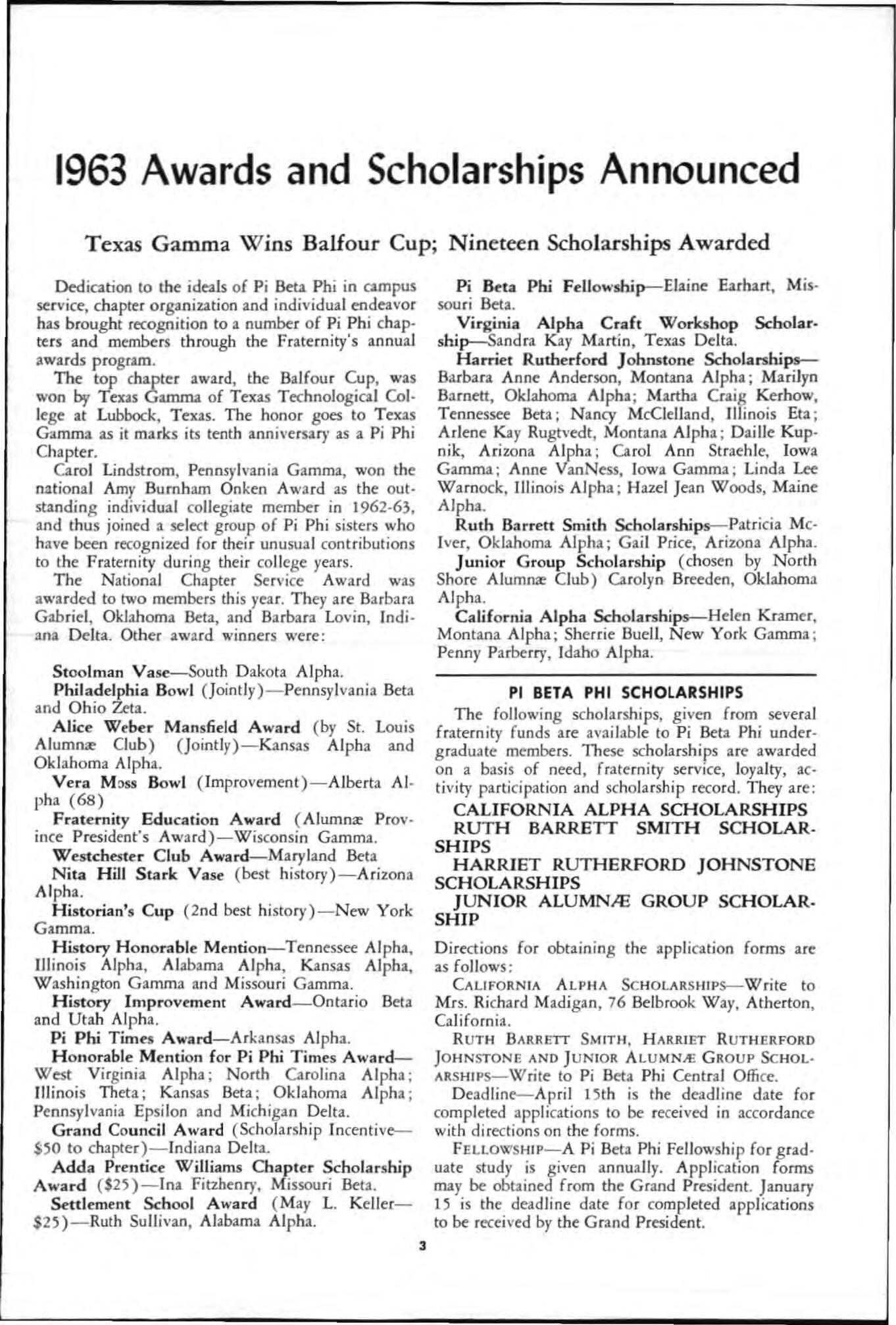 1963 Awards and Scholarships Announced
