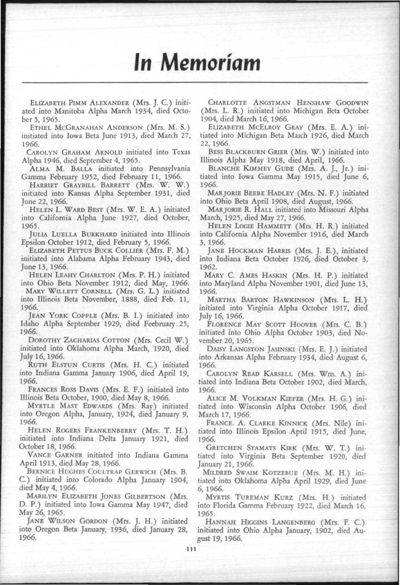In M emo ri.", N Olku: Send to Pi Beta Ph i Central Office, 112 S Hanley Rd ., SI. Loui, Mo 6310'