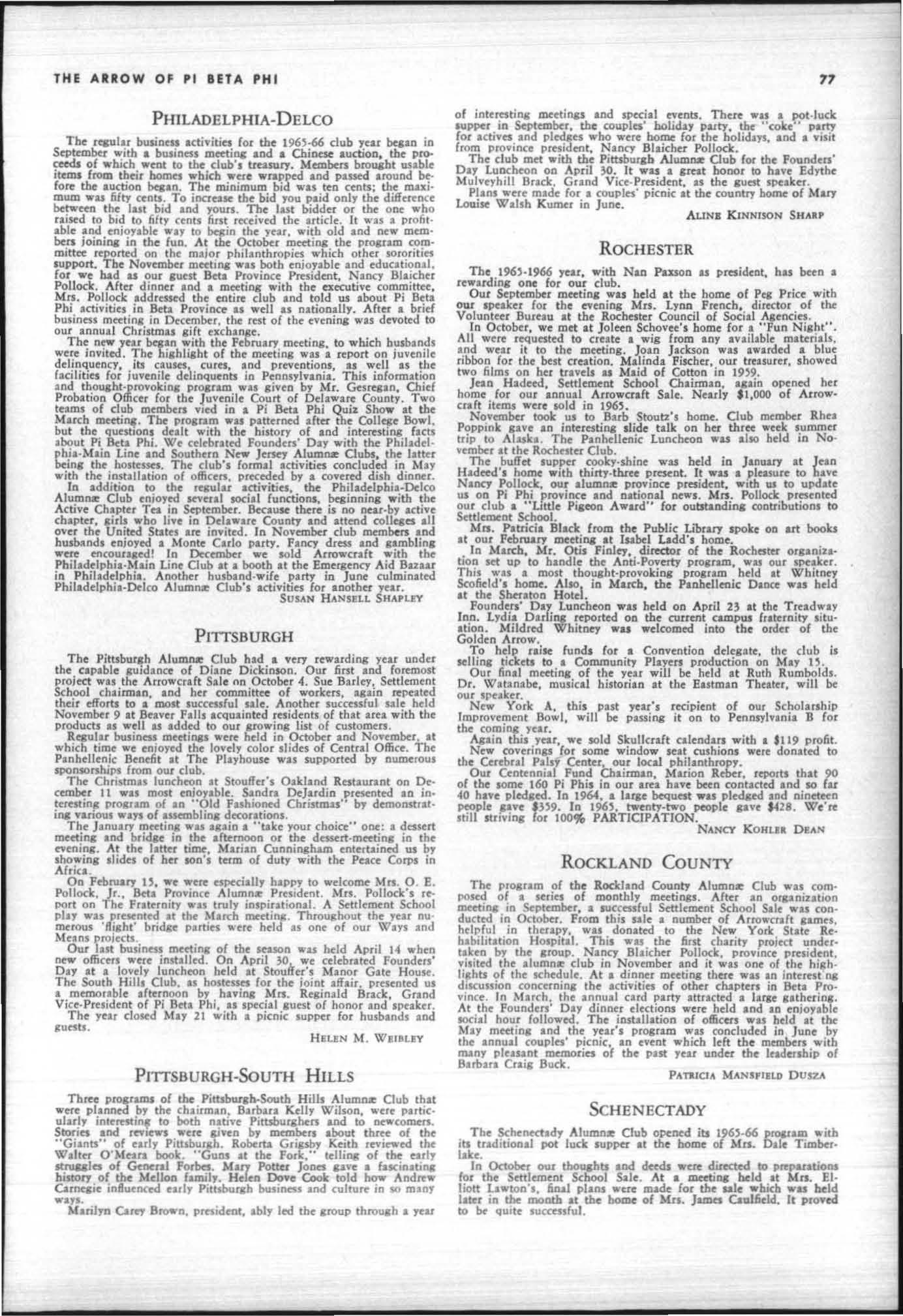 As editor of THE ARROW, she was a member of the National Panhelleni c Editors Conference twenty-five years and had served as its chairman.