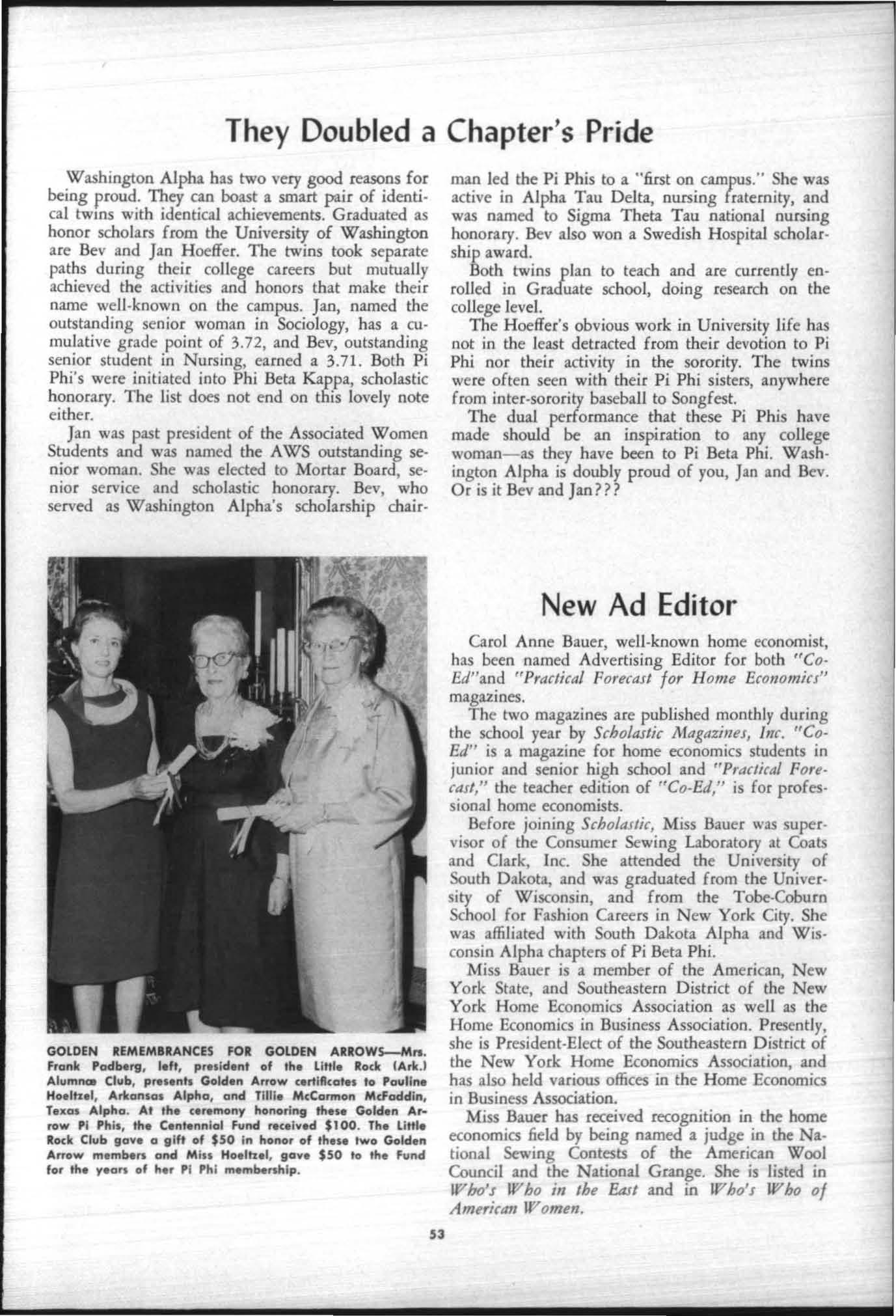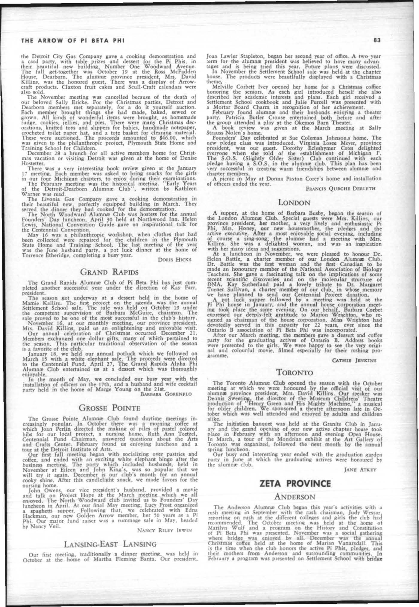 G.Corrcspondence of an editorial nature i. to be addrtsfrd to tbe editor. Mrs Howard C. Stuck !.r , Box "90. Marlr::td Tift, Azk Iteau for publication .hould be addrnKd to the editor to .rrive not liter tban Ju y n. October 10, Janu.,., n , Much , ClM ember of Fraternity M'cu.iMl Auociattd A U matters pertainiaa: to n.boo.1 .dvrrtiliaa: should be dirrcted to Fratunity Maauinel ASSOCiated, U85 Ilidae Avenue Enollon, III C!,Secood eI.,. PGMa&t' paid .t St louil, Missouri, .nd at additiooal maili.Ql' ofticc-. Printed io the Uoittd Statts of Amt:ria.